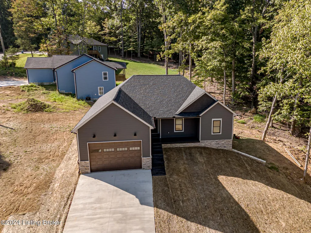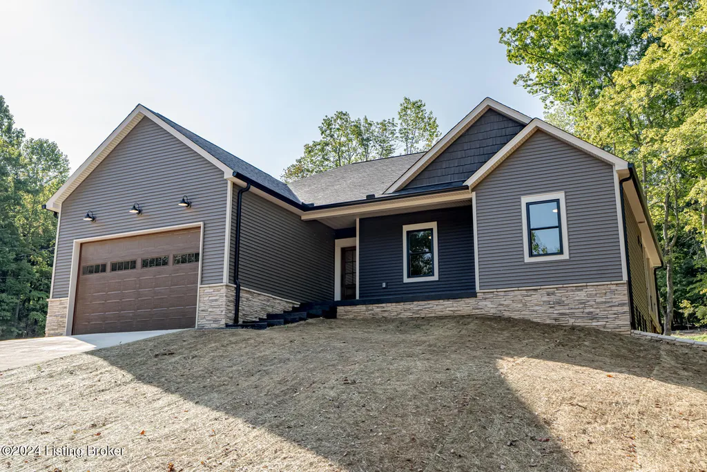 Welcome home to Raspberry Court located in the highly sought after gated community of Doe Valley! Sitting on a large corner lot, this new build is located just a few hundred yards from the lake. This home includes just over 1,800 square feet of finished living space, comprised of 3 bedrooms and 2 baths. The walkout basement is completely unfinished, and includes plumbing and windows to accommodate additional bedrooms and bath in the future. The builder worked closely with an interior designer throughout the project, to make sure every detail of this home is Pinterest worthy. The interior of this new construction home features beautiful hardwood floors, tiled bathrooms with a walk-in shower, a large kitchen with custom painted cabinetry, quartz countertops and tiled backsplash. The home also includes custom trim work with new stainless appliances. The exterior of this home is one of a kind with its unique color combination, and includes a covered, maintenance free composite deck, perfect for relaxing or entertaining. The exterior also boasts colored/stamped concrete, a wood tone garage door and clean craftsman details. With a lake view from the front porch (during the winter), this home has it all. Priced at $449,900 this one is sure to go fast.