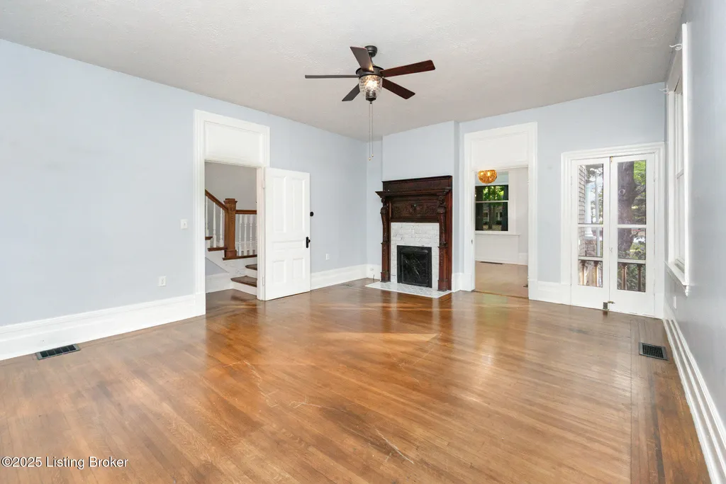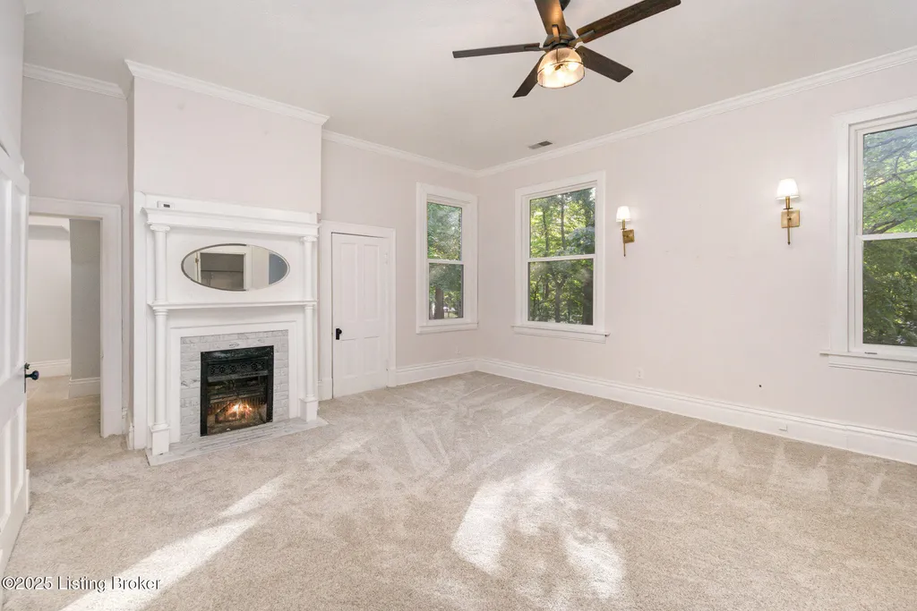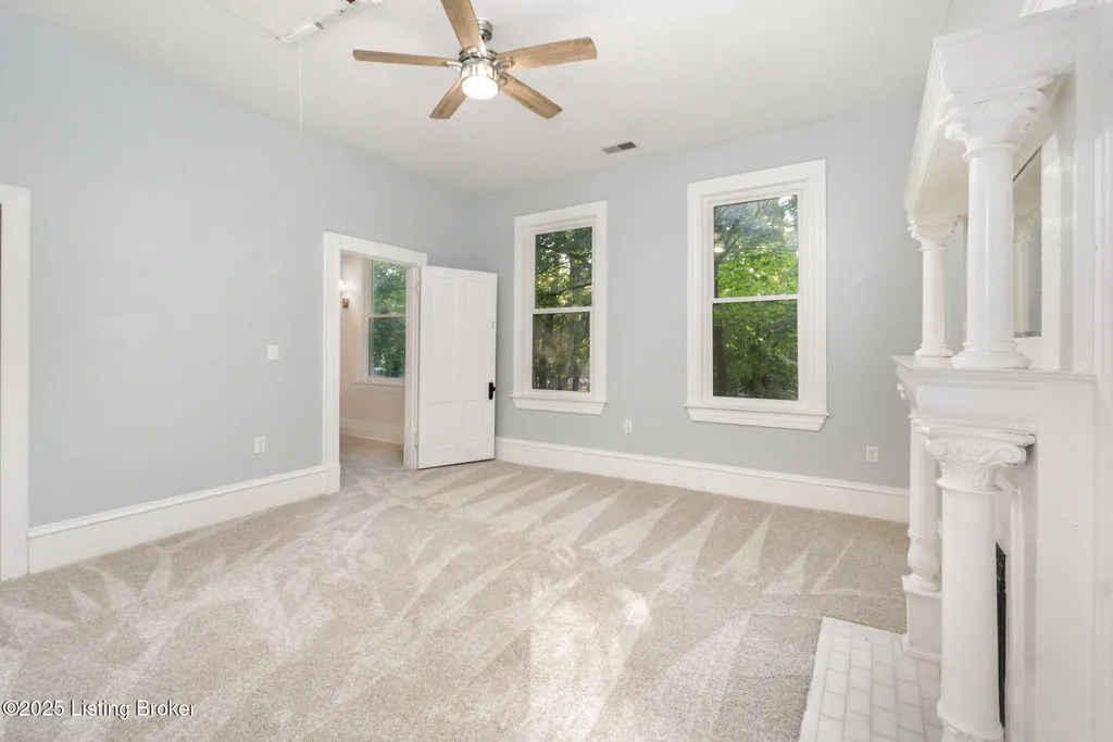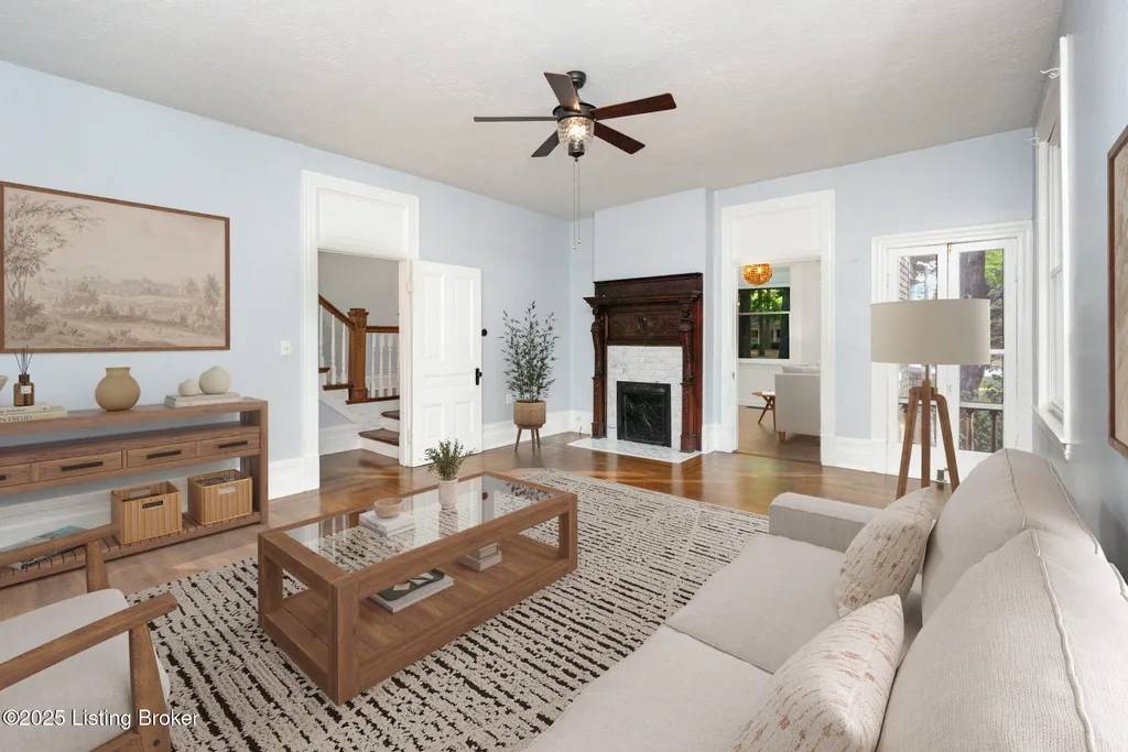 Move in ready! This beautiful home has been updated recently with double pane, energy efficient windows on the entire home, a new electric panel, 2 AC units (2023), replaced/updated front porch, new stainless steel appliances (range, fridge & microwave), new carpet throughout, new driveway, and fresh paint. Washburn House sits on 1.68 acres at the corner of Ash Avenue & Lagrange Road. This exceptional property offers 12 foot ceilings on the 1st and 2nd floors, five bedrooms and two full baths, seamlessly blending character with thoughtful updates. The wide front porch opens into an elegant living and entertaining room, while the main level features an eat-in kitchen, dining room, bedroom, family room, and convenient first-floor laundry. Upstairs, four additional bedrooms and a skylight-lit full bath provide space and comfort. Six original fireplaces, hardwood floors, and abundant natural light highlight the home's timeless appeal, along with a stained-glass window showcasing the original family crest. Surrounded by mature trees and located just steps from award-winning schools, shopping, and dining, this property offers both privacy and community. Don't miss the chance to own this spectacular home and property.