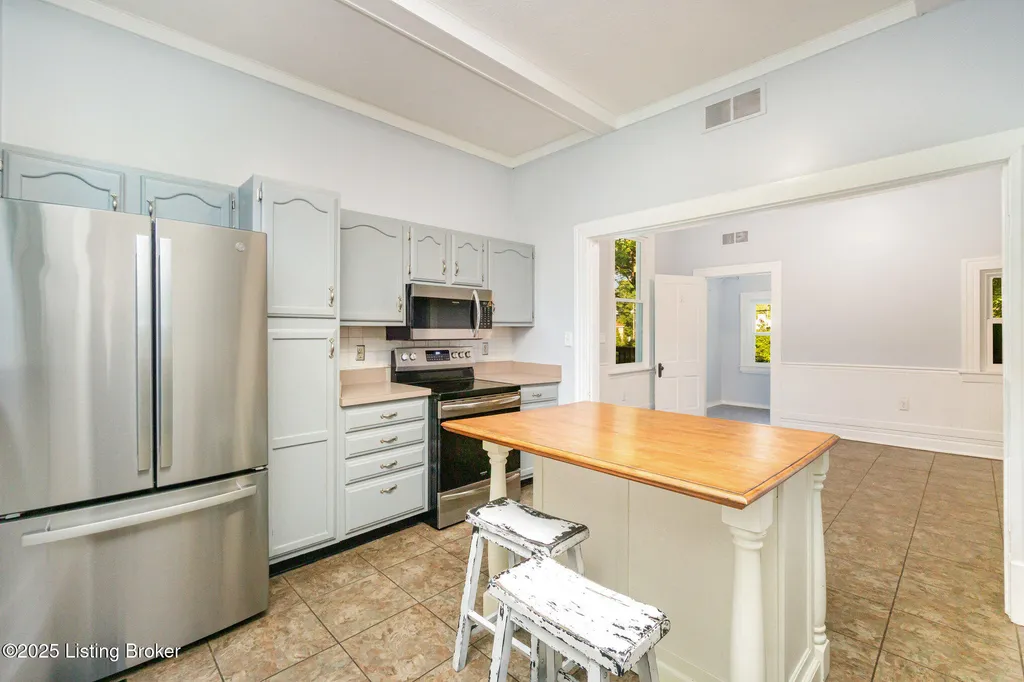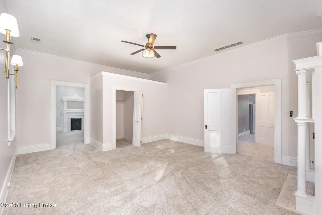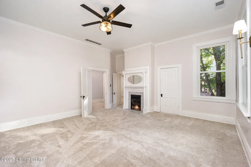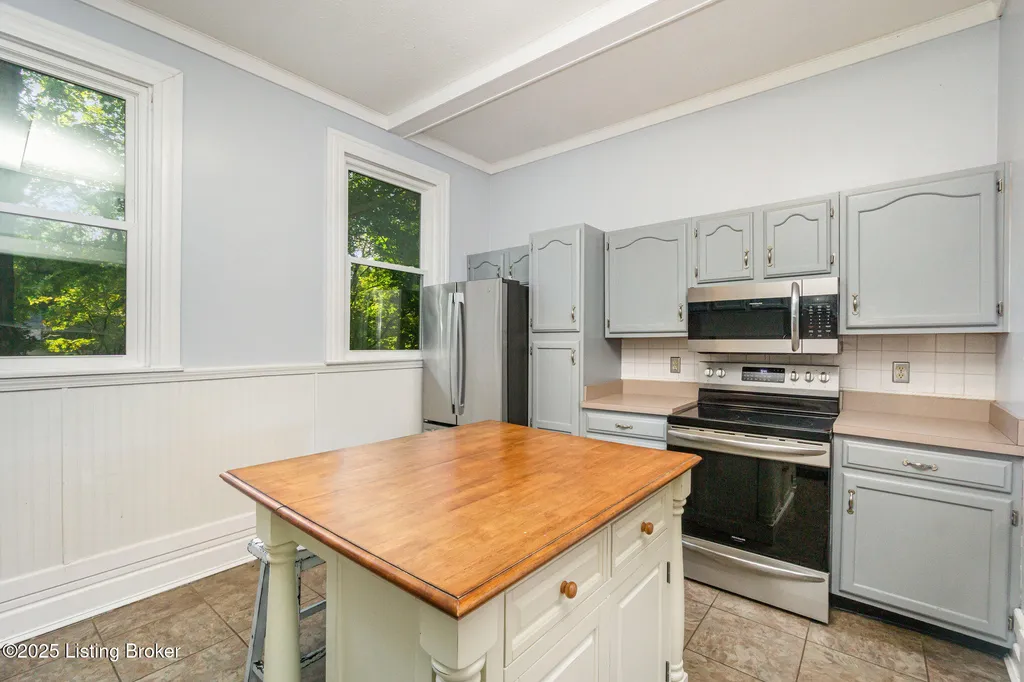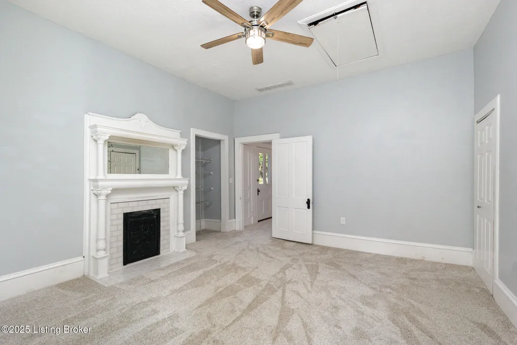 Move in ready! This beautiful home has been updated recently with double pane, energy efficient windows on the entire home, a new electric panel, 2 AC units (2023), replaced/updated front porch, new stainless steel appliances (range, fridge & microwave), new carpet throughout, new driveway, and fresh paint. Washburn House sits on 1.68 acres at the corner of Ash Avenue & Lagrange Road. This exceptional property offers 12 foot ceilings on the 1st and 2nd floors, five bedrooms and two full baths, seamlessly blending character with thoughtful updates. The wide front porch opens into an elegant living and entertaining room, while the main level features an eat-in kitchen, dining room, bedroom, family room, and convenient first-floor laundry. Upstairs, four additional bedrooms and a skylight-lit full bath provide space and comfort. Six original fireplaces, hardwood floors, and abundant natural light highlight the home's timeless appeal, along with a stained-glass window showcasing the original family crest. Surrounded by mature trees and located just steps from award-winning schools, shopping, and dining, this property offers both privacy and community. Don't miss the chance to own this spectacular home and property.
