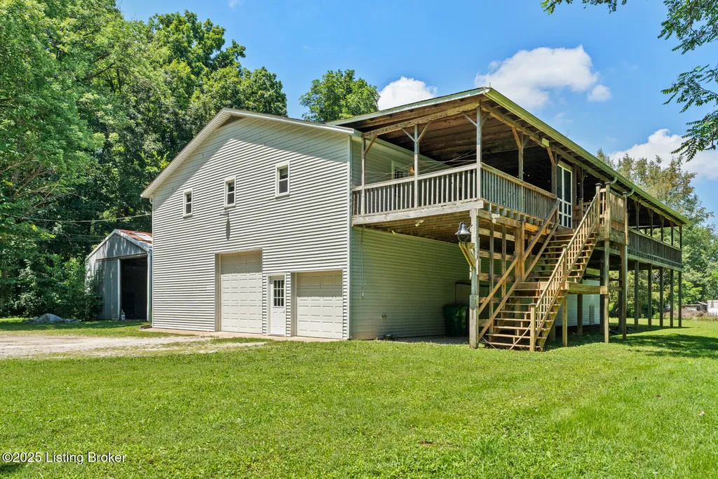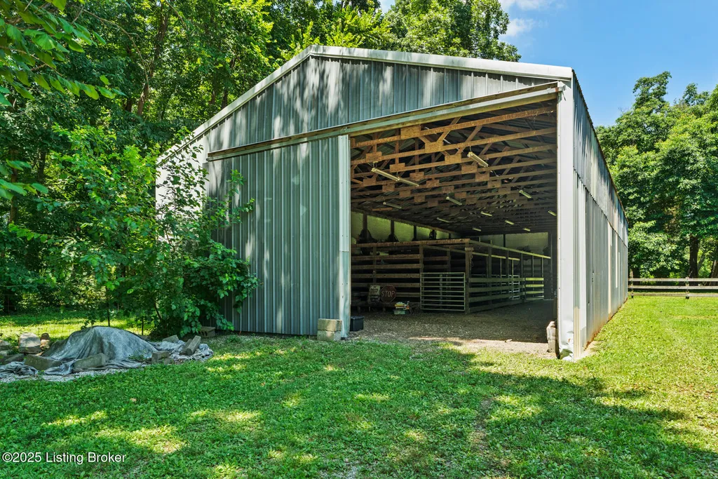 Just minutes from I-65, Louisville & Churchill Downs, this 11+/- acre property offers privacy, versatility & horse amenities. The updated 1,700 +/-sq. ft ranch home features 3 BR, 2 BA, eat-in kitchen, master suite, covered front porch, large deck & 2-car garage. A 6,400+/-sq ft multi-use building includes a duplex apartment (3-BR/2-BA & 1(possibly 2)-BR/1-BA units), commons area w/ glass doors, spacious covered patio, media room, & 2-car garage w/bathroom, shop & storage. Equestrian features include a 40x80 horse barn w/stalls, wide aisleways, water & electric, plus fenced pasture for grazing & riding. Park-like grounds w/tree-lined drive, fencing & abundant wildlife. Rare opportunity combining turnkey residence, income potential & horse-ready amenities in the Shepherdsville/Brooks area.
