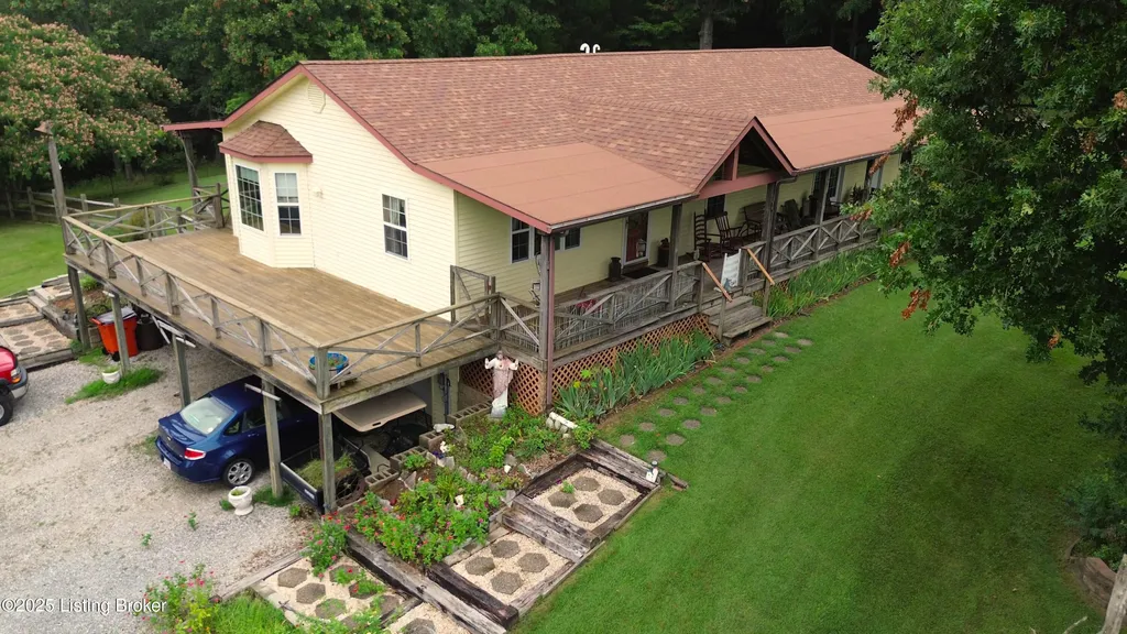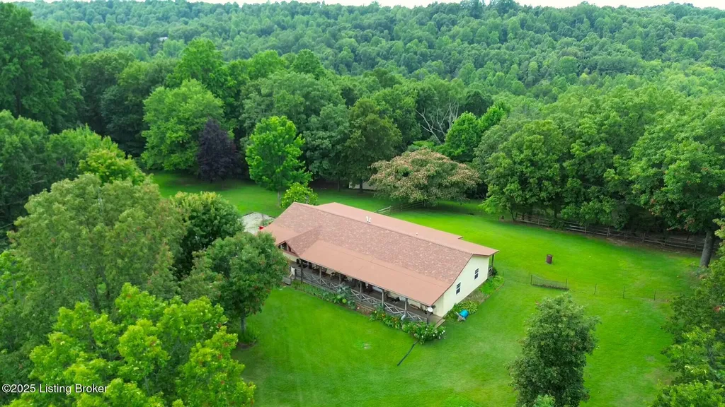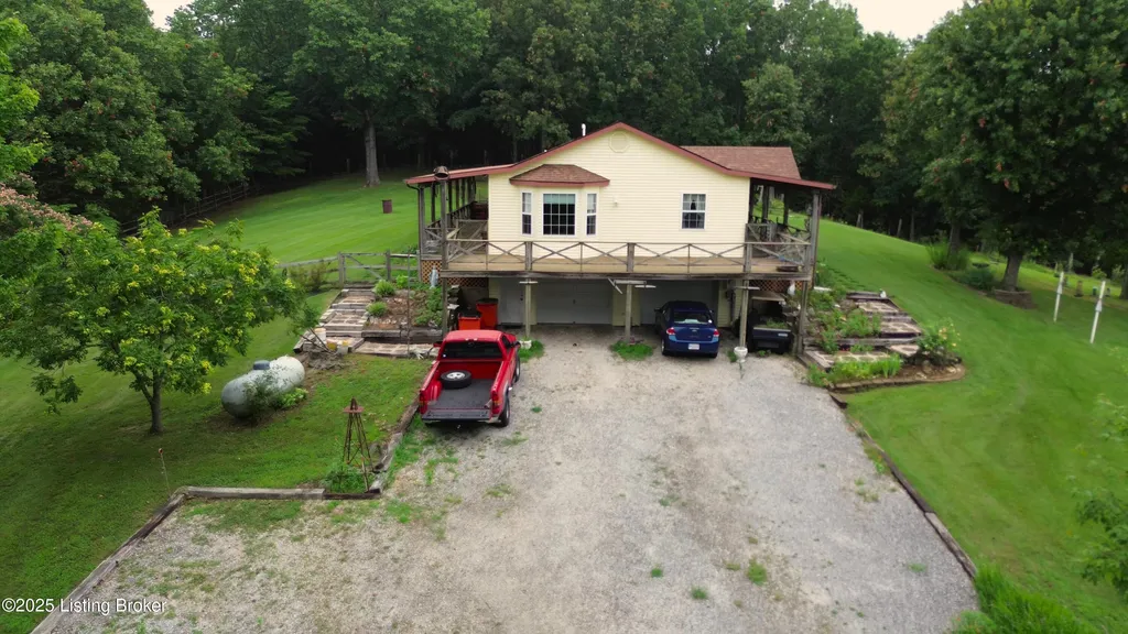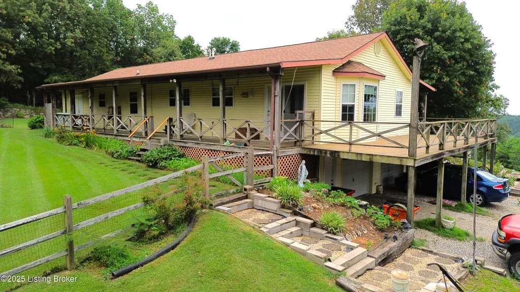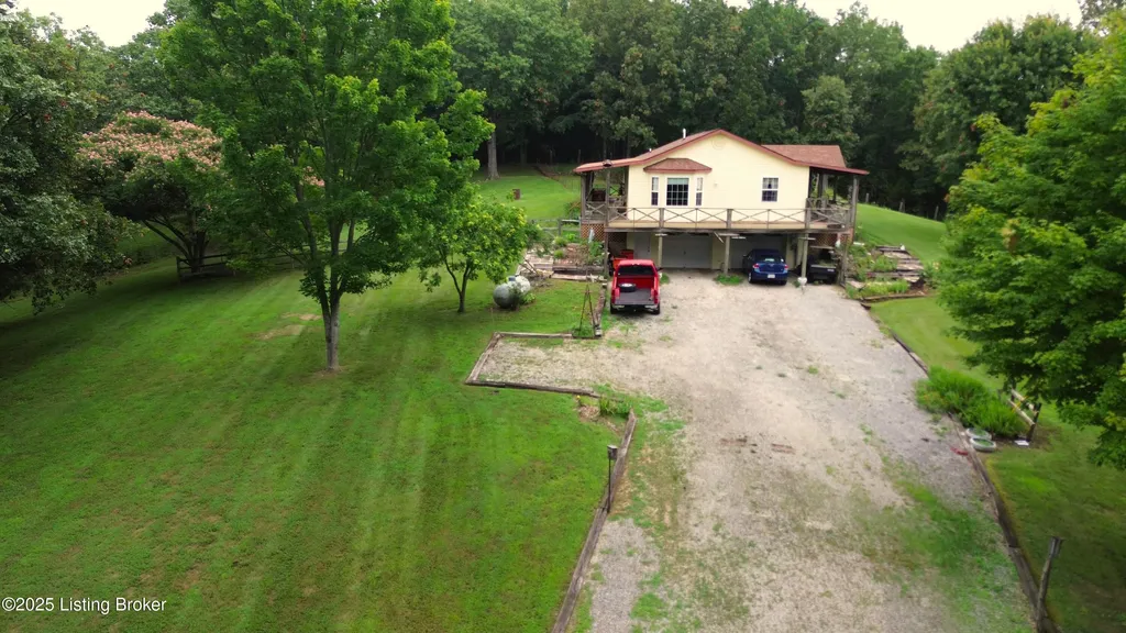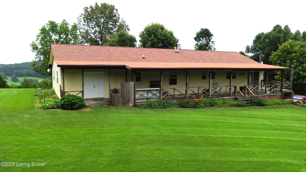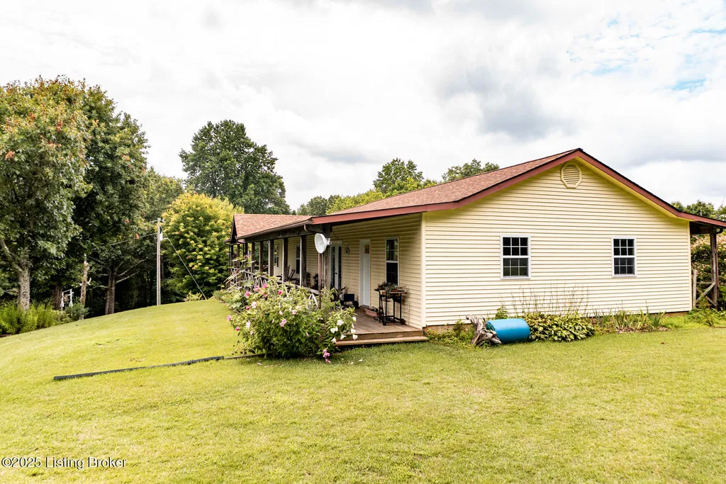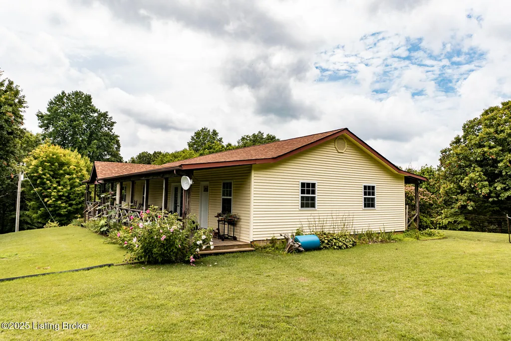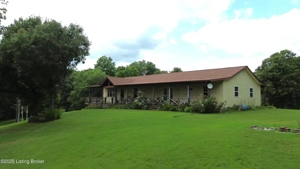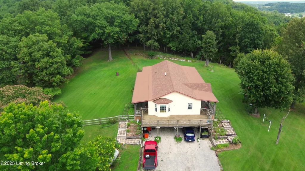 Escape to your private sanctuary at 1020 Yates Chapel Rd in Cecilia, KY. This custom-built 3-bedroom, 2.5-bath, 2,610 sq ft home offers the perfect blend of comfort, privacy, and craftsmanship. Enjoy peaceful country living from the covered front and rear porches that wrap three sides of the home and capture scenic rural views. An oversized two-car garage with automatic overhead doors, accessible from the basement, provides excellent storage and convenience. Situated on 45.3 acres, the property features abundant wildlife, panoramic views, and marketable timber - ideal for outdoor enthusiasts and those seeking space and seclusion. Inside, the open-concept living, dining, and kitchen areas showcase vaulted ceilings with exposed beams, creating a warm and inviting atmosphere. A gas fireplace and gas stove offer comfort and reliability during power outages. The primary suite serves as a true retreat with a double vanity, walk-in shower, and jetted tub. Double bay doors lead directly to the covered porches, perfect for relaxing or entertaining. Additional highlights include a finished basement with a large entertaining area, half bath, and utility sink; an attached heated and cooled concrete-floor workshop with hot and cold water; an 840 sq ft equipment shed and multiple outbuildings; insulation in all interior walls; and a non-smoking, one-owner history with detailed maintenance records. Despite its private setting, this exceptional property is just 13 miles from Elizabethtown, offering easy access to shopping, dining, and employment opportunities.