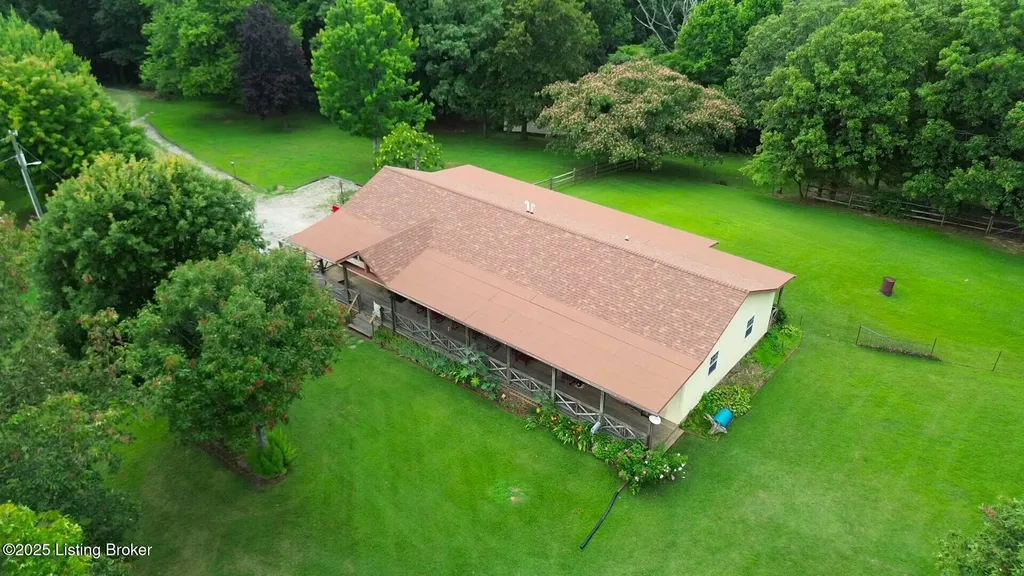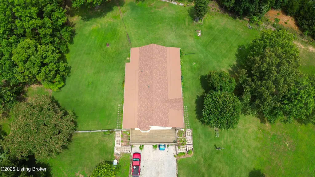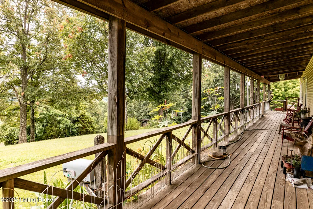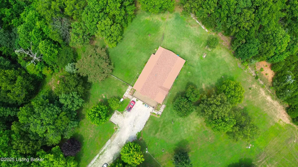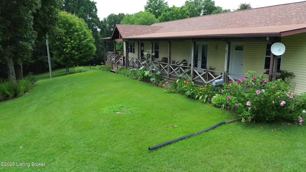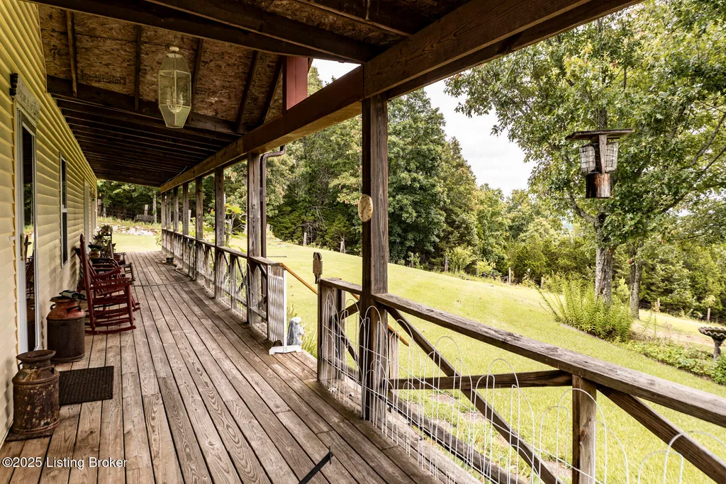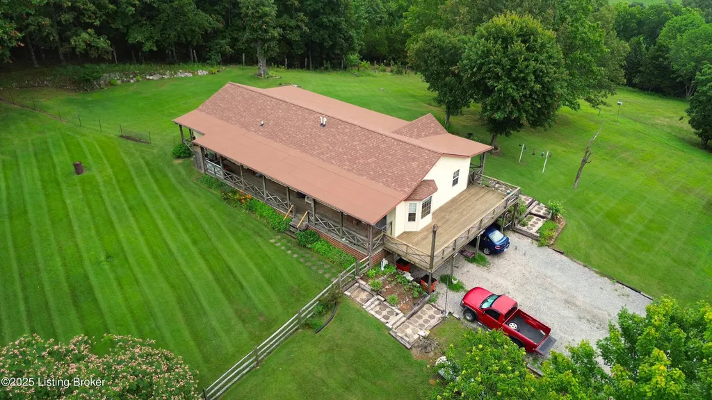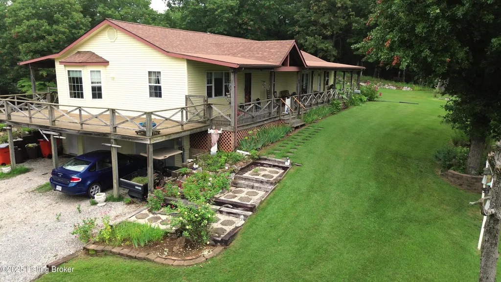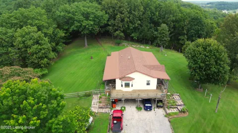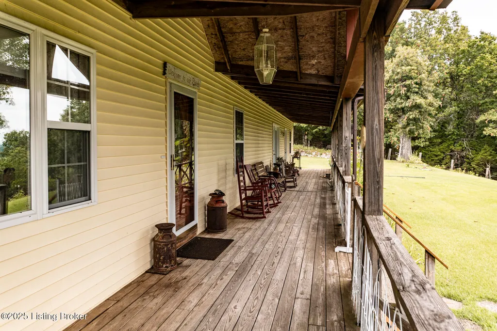 Escape to your private sanctuary at 1020 Yates Chapel Rd in Cecilia, KY. This custom-built 3-bedroom, 2.5-bath, 2,610 sq ft home offers the perfect blend of comfort, privacy, and craftsmanship. Enjoy peaceful country living from the covered front and rear porches that wrap three sides of the home and capture scenic rural views. An oversized two-car garage with automatic overhead doors, accessible from the basement, provides excellent storage and convenience. Situated on 45.3 acres, the property features abundant wildlife, panoramic views, and marketable timber - ideal for outdoor enthusiasts and those seeking space and seclusion. Inside, the open-concept living, dining, and kitchen areas showcase vaulted ceilings with exposed beams, creating a warm and inviting atmosphere. A gas fireplace and gas stove offer comfort and reliability during power outages. The primary suite serves as a true retreat with a double vanity, walk-in shower, and jetted tub. Double bay doors lead directly to the covered porches, perfect for relaxing or entertaining. Additional highlights include a finished basement with a large entertaining area, half bath, and utility sink; an attached heated and cooled concrete-floor workshop with hot and cold water; an 840 sq ft equipment shed and multiple outbuildings; insulation in all interior walls; and a non-smoking, one-owner history with detailed maintenance records. Despite its private setting, this exceptional property is just 13 miles from Elizabethtown, offering easy access to shopping, dining, and employment opportunities.