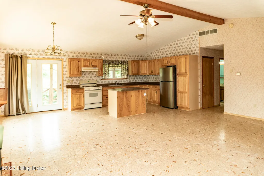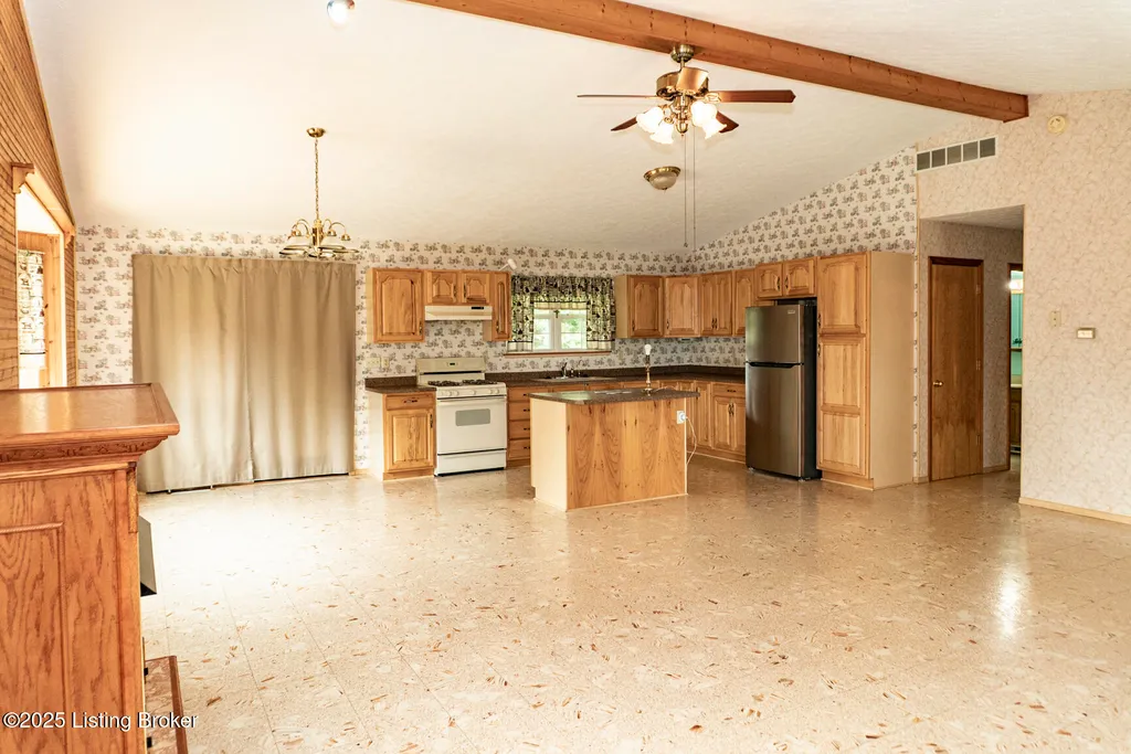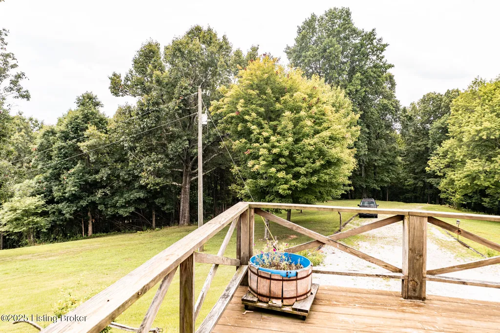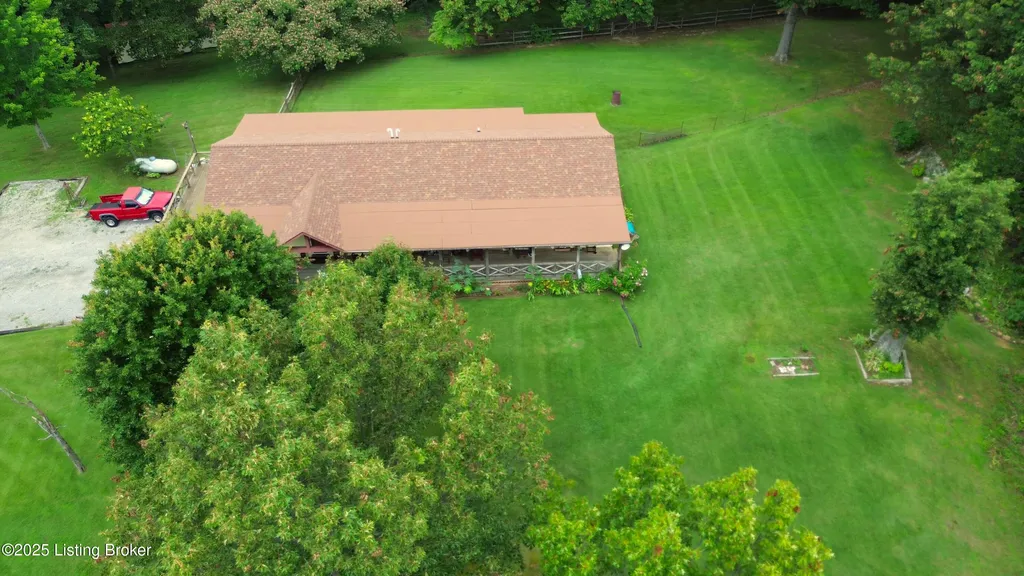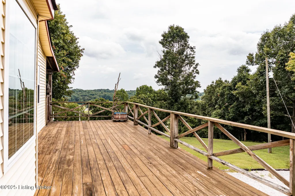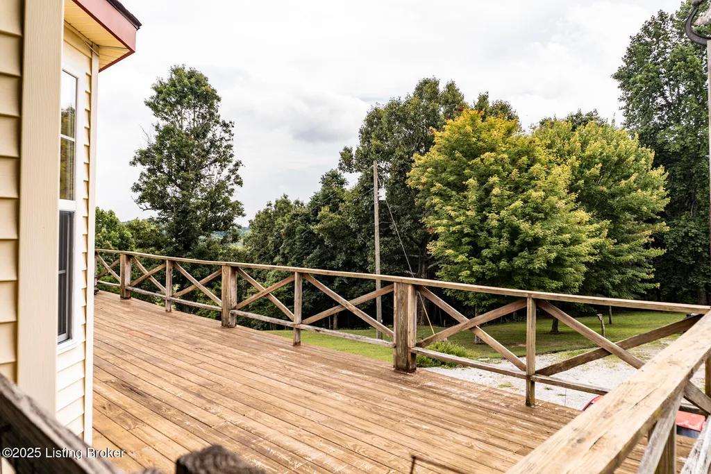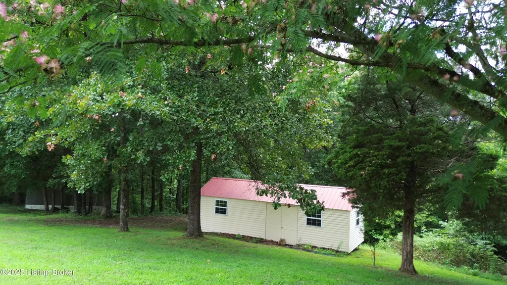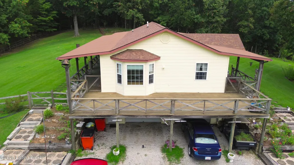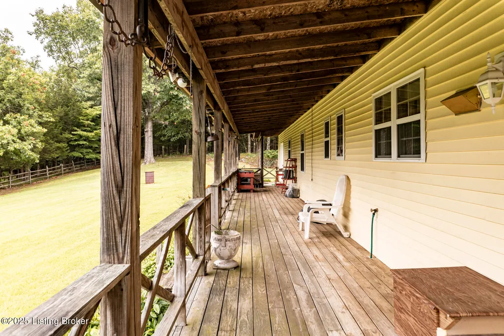 Escape to your private sanctuary at 1020 Yates Chapel Rd in Cecilia, KY. This custom-built 3-bedroom, 2.5-bath, 2,610 sq ft home offers the perfect blend of comfort, privacy, and craftsmanship. Enjoy peaceful country living from the covered front and rear porches that wrap three sides of the home and capture scenic rural views. An oversized two-car garage with automatic overhead doors, accessible from the basement, provides excellent storage and convenience. Situated on 45.3 acres, the property features abundant wildlife, panoramic views, and marketable timber - ideal for outdoor enthusiasts and those seeking space and seclusion. Inside, the open-concept living, dining, and kitchen areas showcase vaulted ceilings with exposed beams, creating a warm and inviting atmosphere. A gas fireplace and gas stove offer comfort and reliability during power outages. The primary suite serves as a true retreat with a double vanity, walk-in shower, and jetted tub. Double bay doors lead directly to the covered porches, perfect for relaxing or entertaining. Additional highlights include a finished basement with a large entertaining area, half bath, and utility sink; an attached heated and cooled concrete-floor workshop with hot and cold water; an 840 sq ft equipment shed and multiple outbuildings; insulation in all interior walls; and a non-smoking, one-owner history with detailed maintenance records. Despite its private setting, this exceptional property is just 13 miles from Elizabethtown, offering easy access to shopping, dining, and employment opportunities.