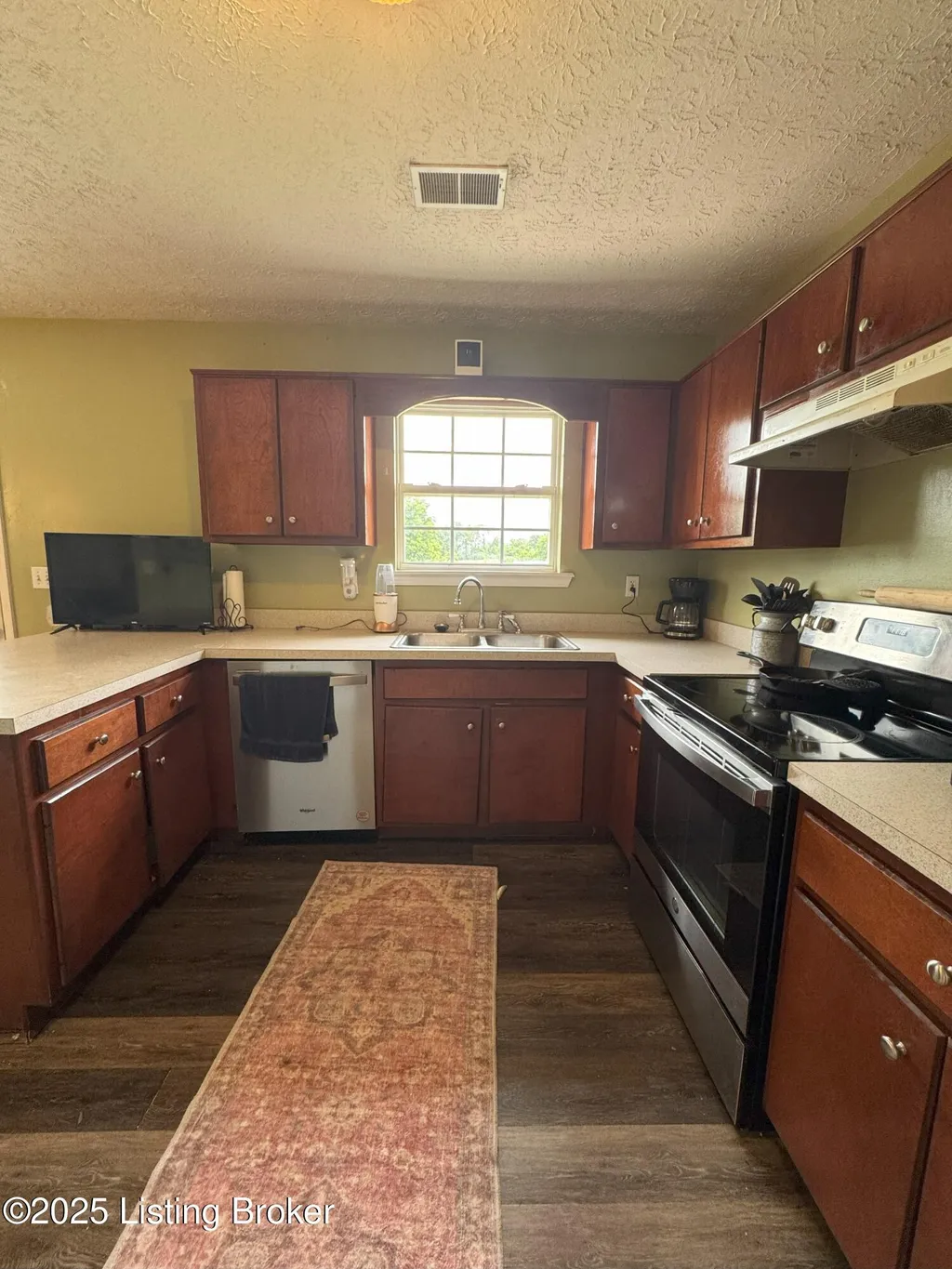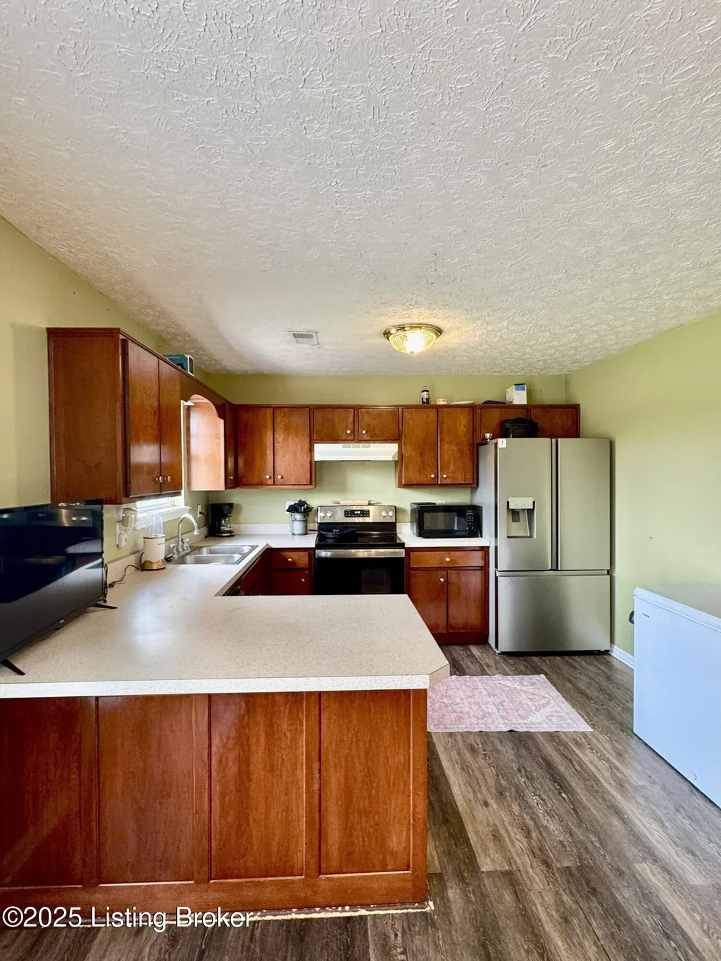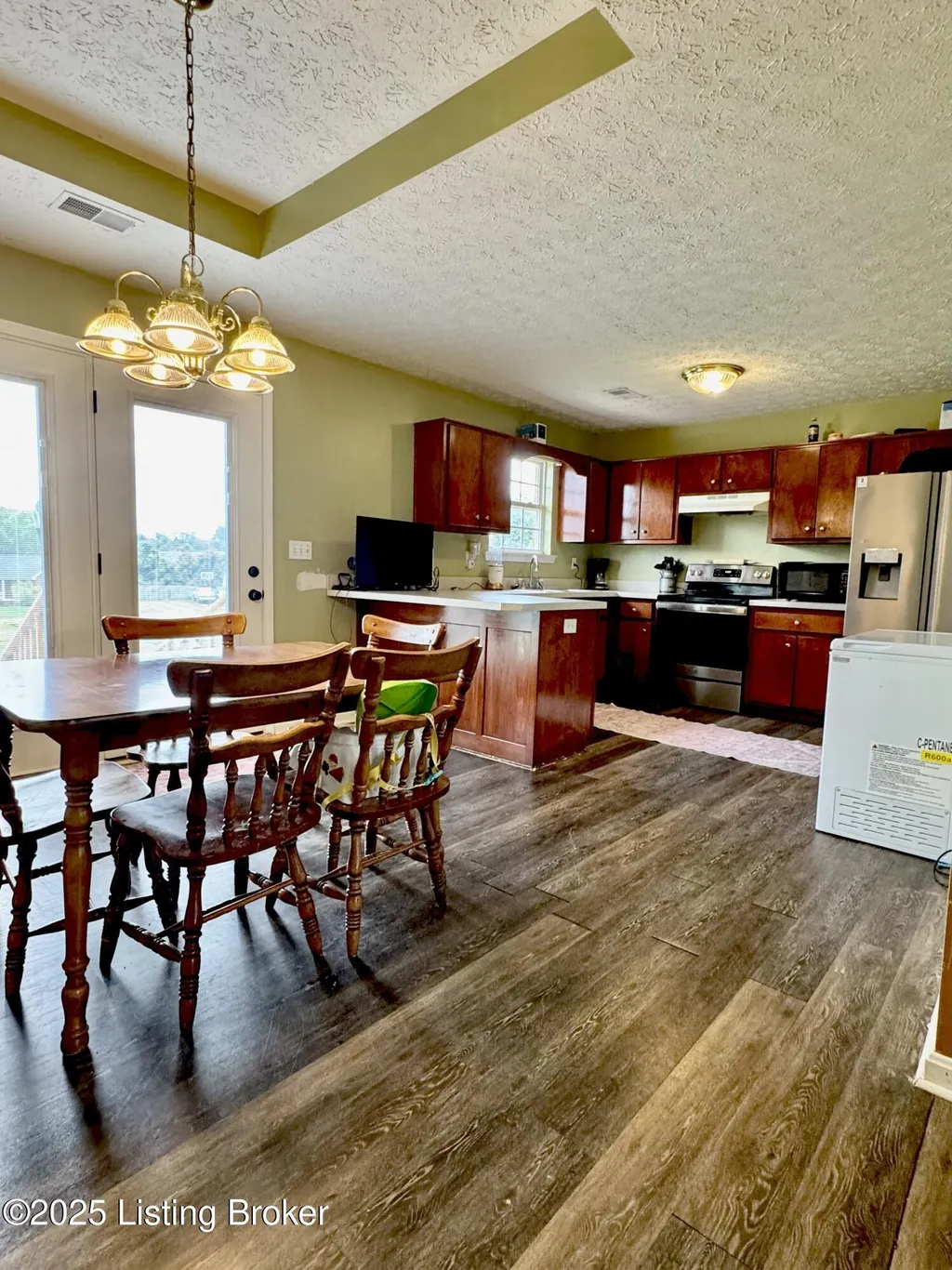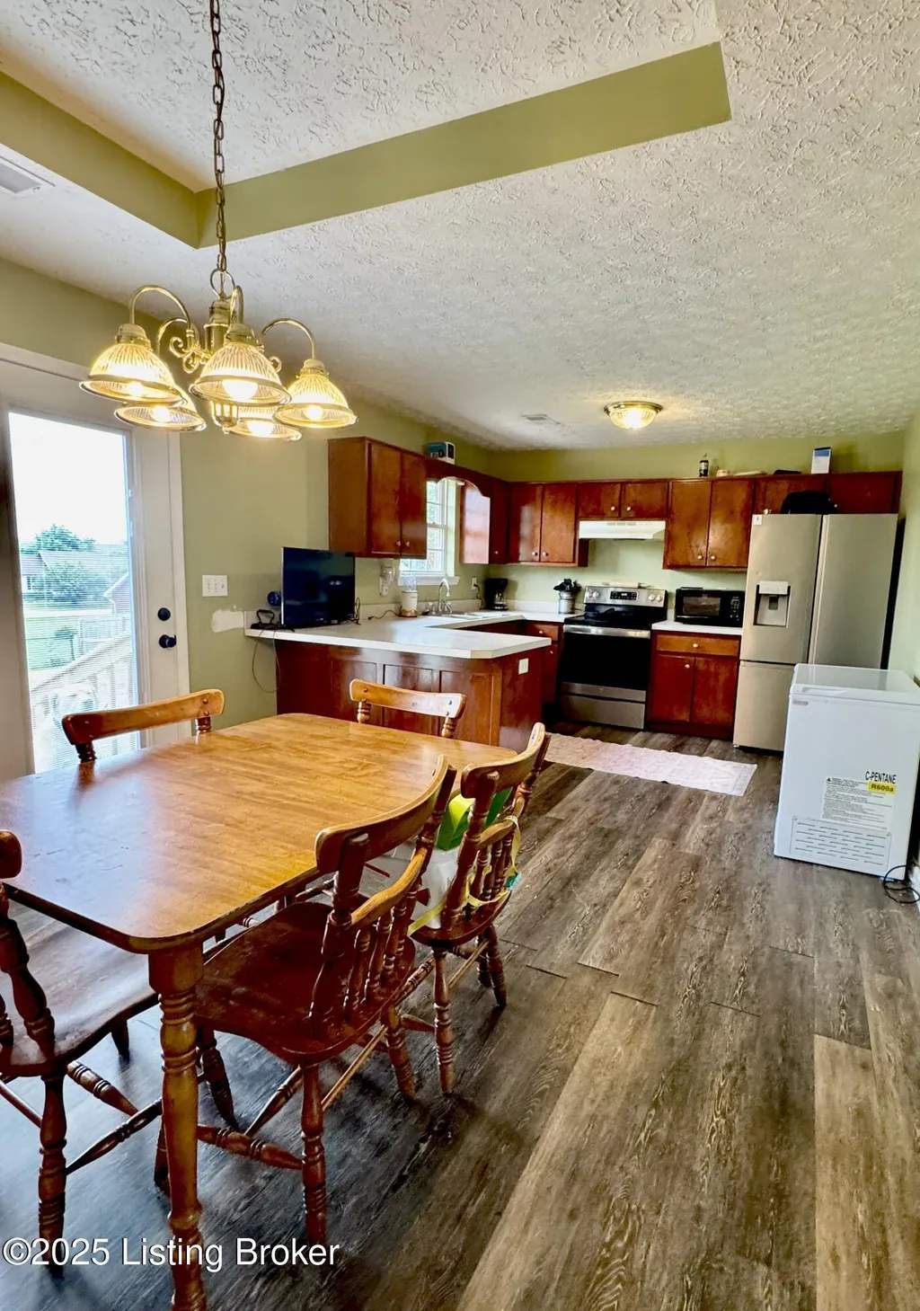 Charming 3-bedroom, 2-bath ranch located in a quiet cul-de-sac just minutes from historic downtown Bardstown! This 1,363 sq ft home offers a spacious family room with vaulted ceilings and an abundance of natural light. The spacious kitchen features stainless steel appliances and opens to a dining area with access to a large, fully fenced backyard and concrete patio. Also Offers a split bedroom layout and a convenient, dedicated laundry area. Enjoy the mature shade of your front yard from the large covered front porch. Located in an established, family-friendly neighborhood.