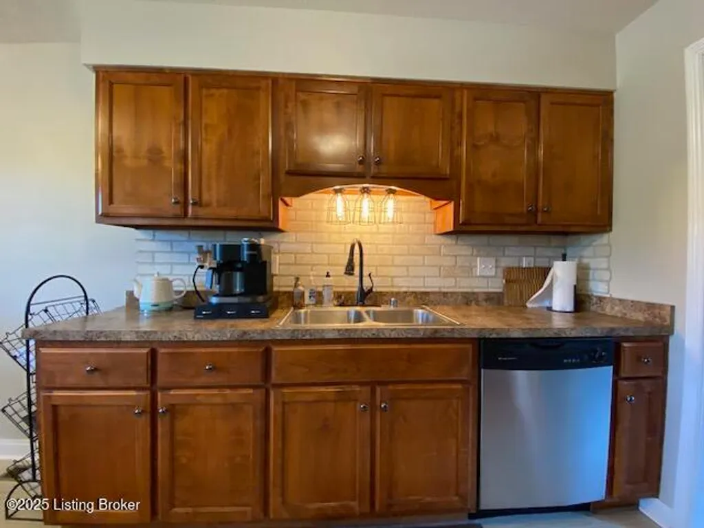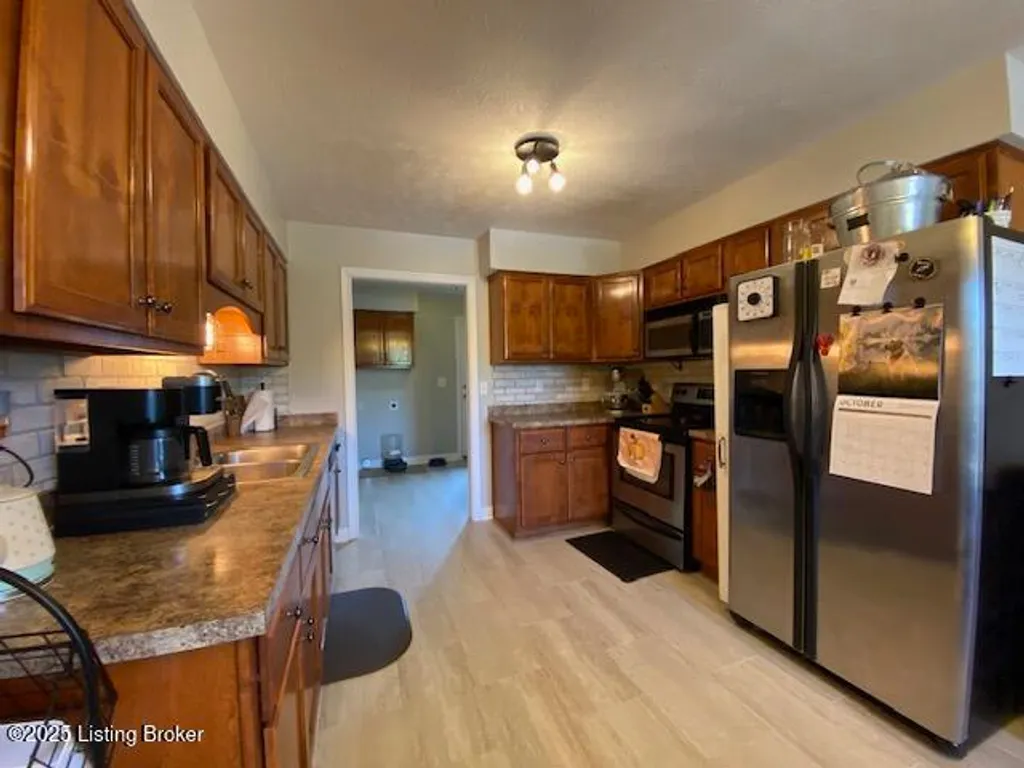 Let's go take al look at this great three bedroom three bath brick ranch style home with finished walkout basement & two car attached garage. Home offers a spacious Living Room with hardwood. Eat in Kitchen with stainless appliances , tile backsplash & new vinyl plank flooring. Dual Laundry both upstairs and in the basement is a wonderful feature. Primary Bedroom & bath offer new vinyl plank flooring. Two additional bedrooms also with new flooring & full Hall Bath complete the main level of the home. Venture downstairs to enjoy the Den, perfect for family movie night, entertaining or an awesome man cave. Ventless gas log fireplace gives it the cozy feel. Large storage room provides additional space for storage. Venture outdoors to enjoy the nice patio that overlooks the spacious back yard where you can kick back & relax after a long day. All conveniently located near all the amenities of Historic Bardstown. Let's make this your New Kentucky home! Give us a call today for your private tour!!