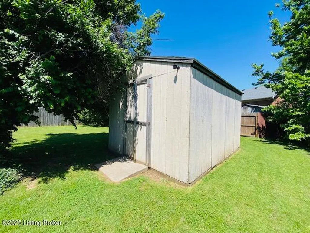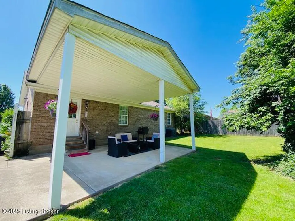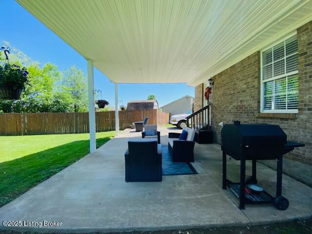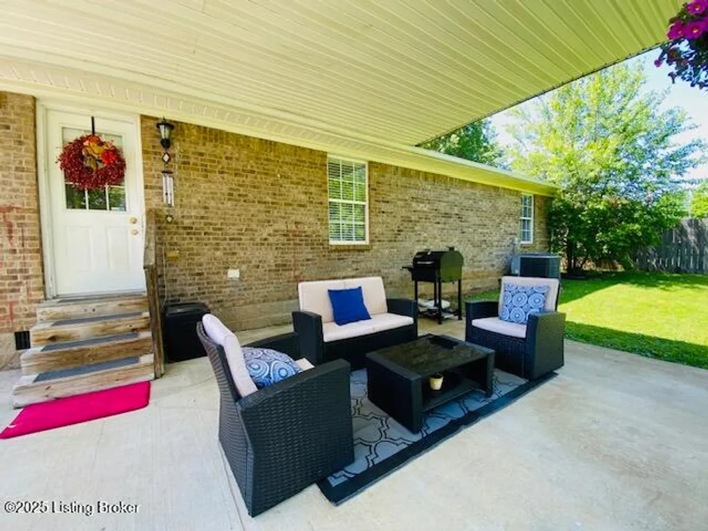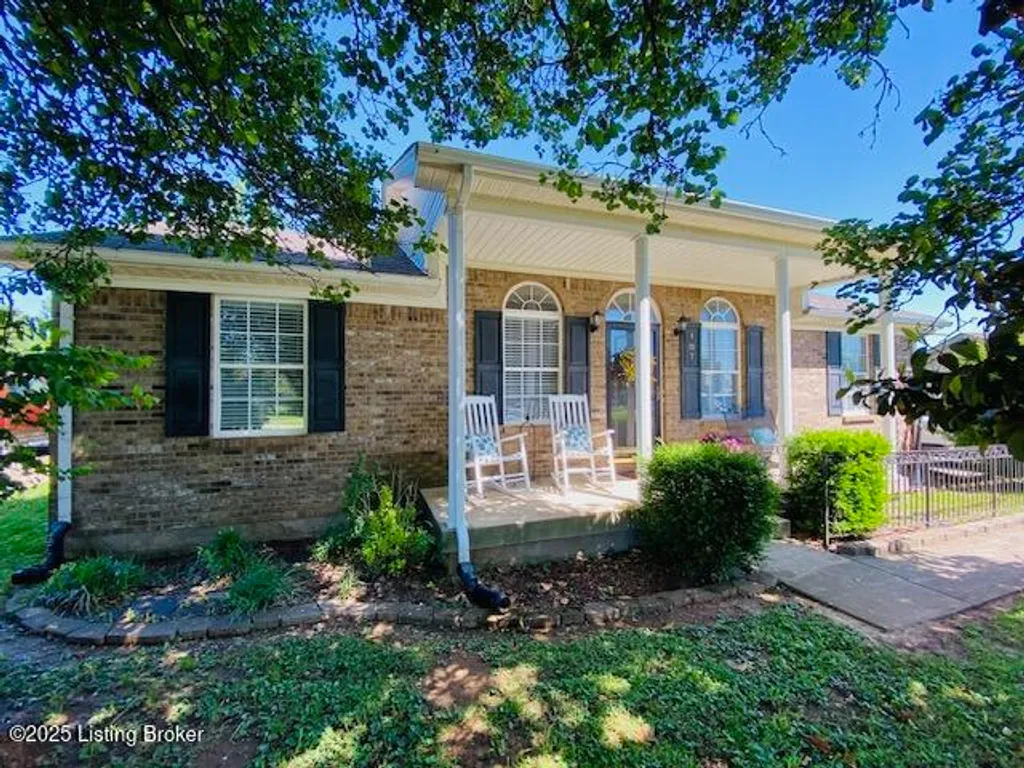 Don't miss your chance to own this comfortable three bedroom two bath brick ranch style home near shopping, schools & restaurants in historic Bardstown. Home offers 1170 sq. ft. of living space. Enter into the Living Room with laminate flooring & vaulted ceiling. Eat in Kitchen offers nice cabinetry & comes equipped with stainless appliances. Carpeted Primary Bedroom suite & two additional bedrooms with laminate flooring. Outdoor features include a covered front porch as well as covered rear patio for all your outdoor enjoyment. Privacy fenced back yard with outbuilding for additional storage. Perfect first-time homebuyer opportunity. Don't Delay let's go take a look at this great home today!