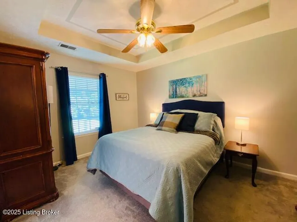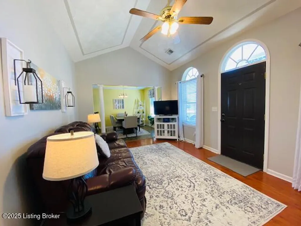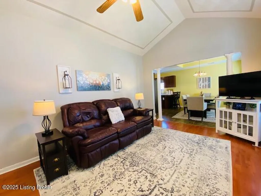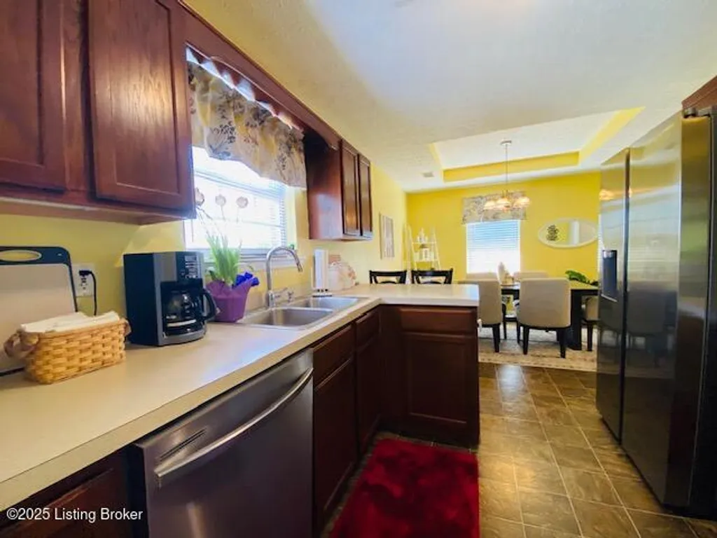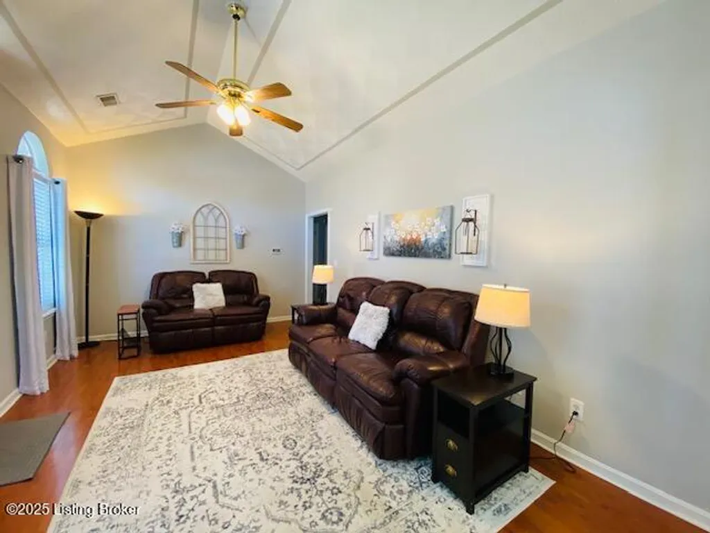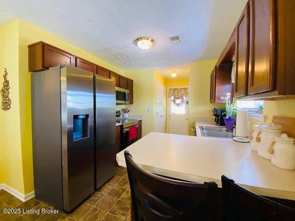 Don't miss your chance to own this comfortable three bedroom two bath brick ranch style home near shopping, schools & restaurants in historic Bardstown. Home offers 1170 sq. ft. of living space. Enter into the Living Room with laminate flooring & vaulted ceiling. Eat in Kitchen offers nice cabinetry & comes equipped with stainless appliances. Carpeted Primary Bedroom suite & two additional bedrooms with laminate flooring. Outdoor features include a covered front porch as well as covered rear patio for all your outdoor enjoyment. Privacy fenced back yard with outbuilding for additional storage. Perfect first-time homebuyer opportunity. Don't Delay let's go take a look at this great home today!