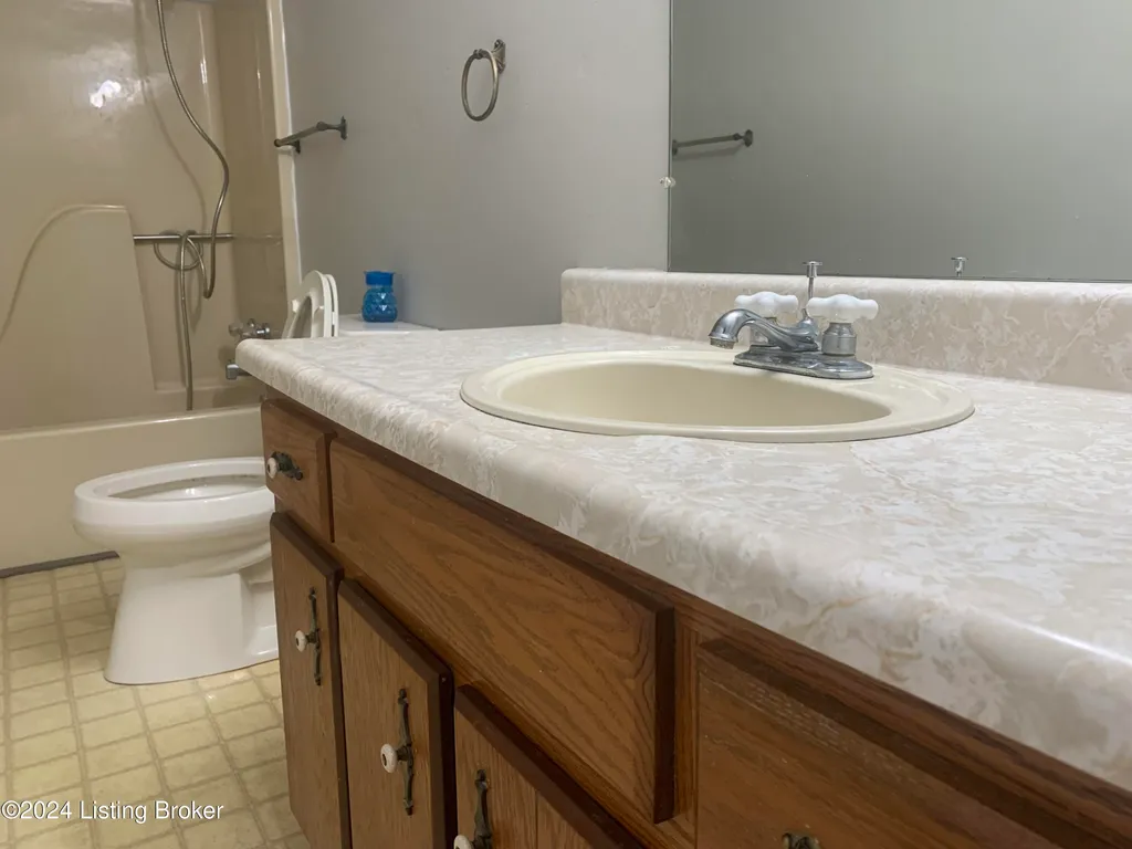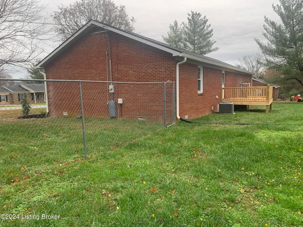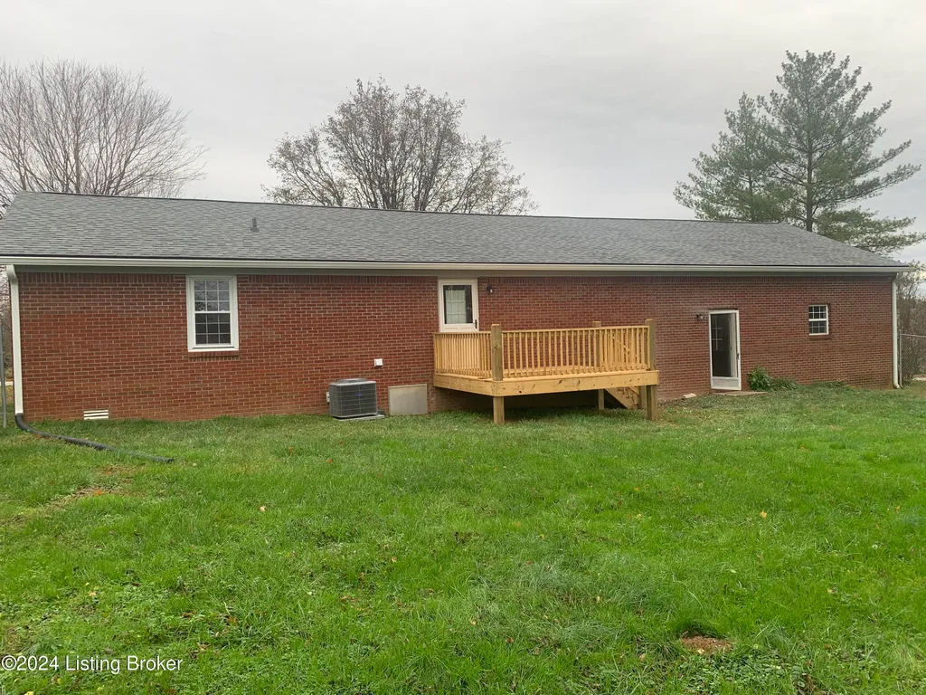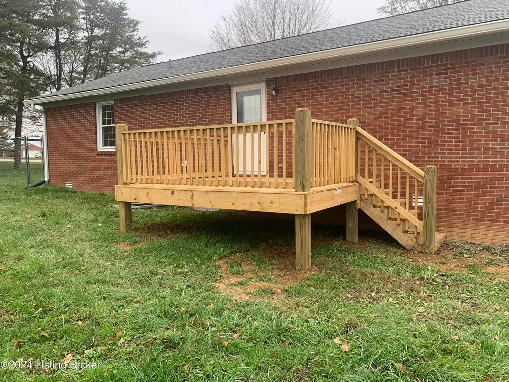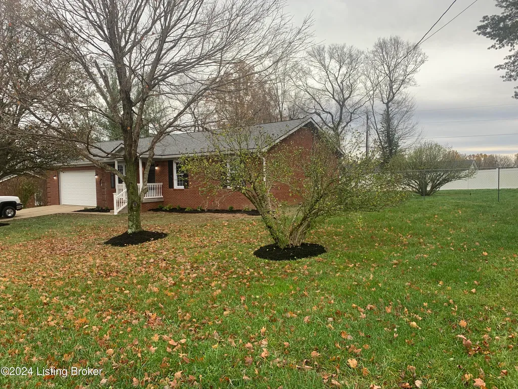 3 Bedroom, 1 bath 1260' sq feet ranch with oversized 2 car attached garage. Extra large lot with small outbuilding for storage and fenced back yard for the pets or kids. Recently painted throughout, garage just drywalled and painted, new deck off the kitchen, some new fixtures and completely landscaped with fancy curb appeal! Excellent location to Louisville, Mt Washington and or downtown Bardstown. This would make an excellent starter home for that first time buyer. Established neighborhood and located on a dead end street.