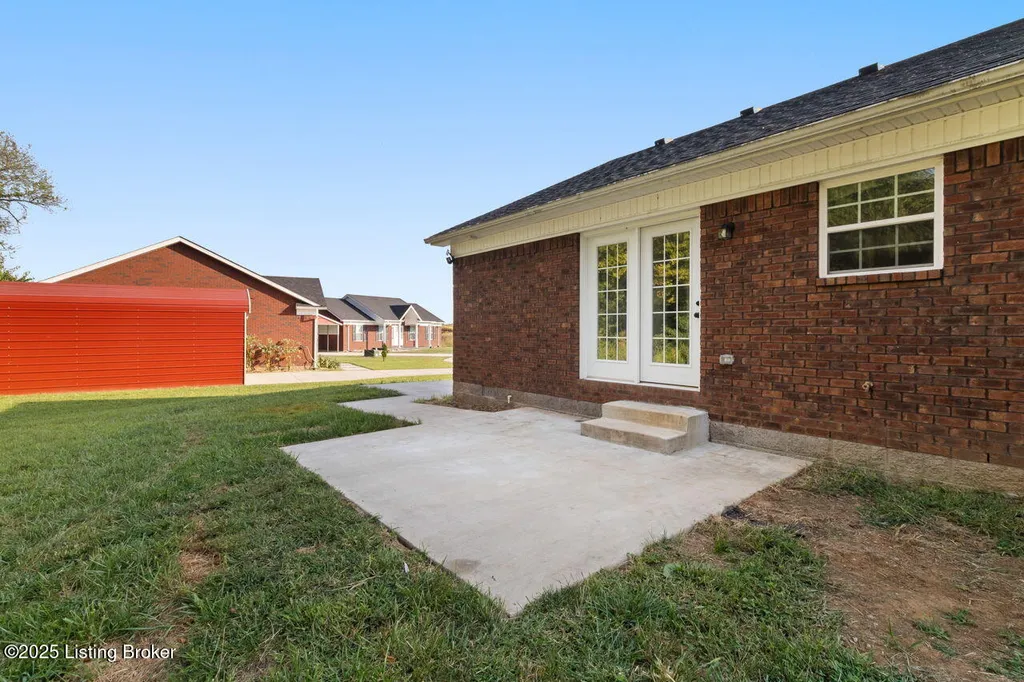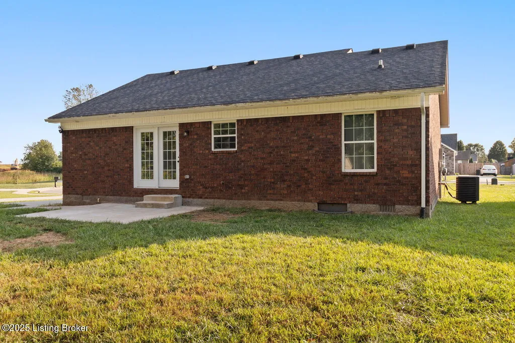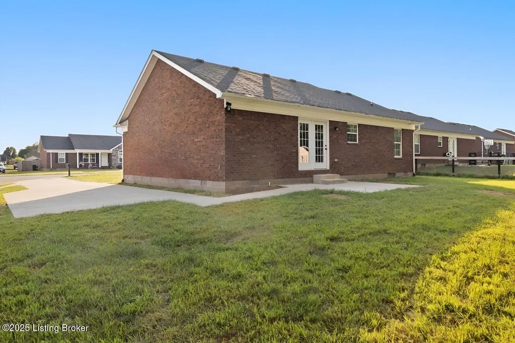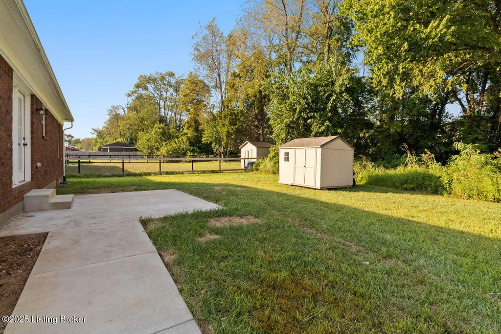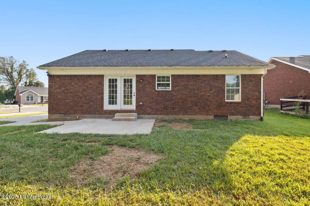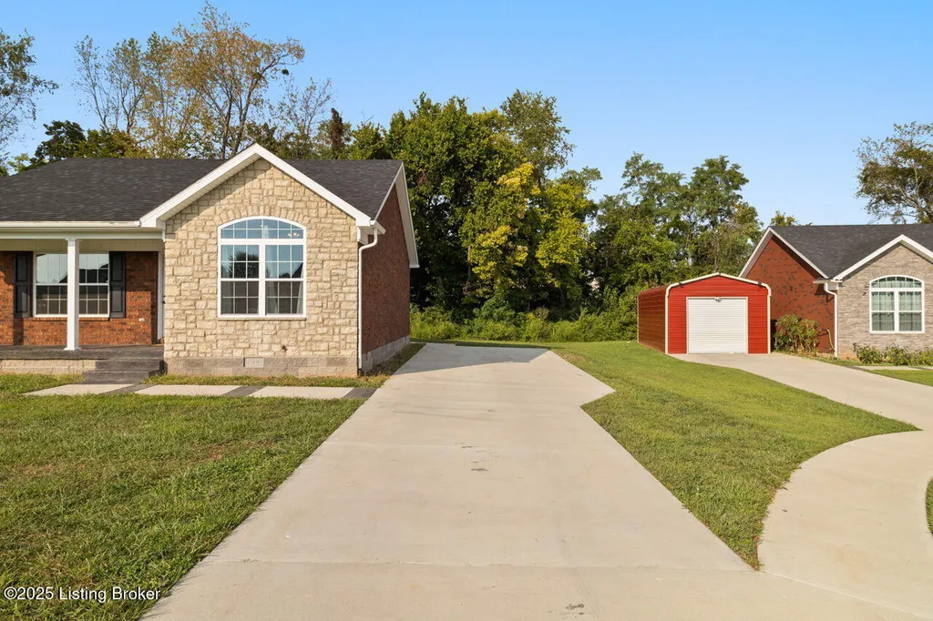 Welcome to this charming 3-bedroom, 2-bath brick ranch offering 1,250 square feet of comfortable living. Built just two years ago, this home features a modern open floor plan that's both functional and inviting. The primary suite is a private retreat with a vaulted ceiling, walk-in closet, and ensuite bath. A split floor plan design places the two additional bedrooms and full bath on the opposite side, creating convenience and privacy for family or guests. Everyday functionality shines with a separate laundry room, while the back patio and small shed provide added outdoor living and storage space. Move-in ready and thoughtfully designed, this home blends modern style with low-maintenance living.