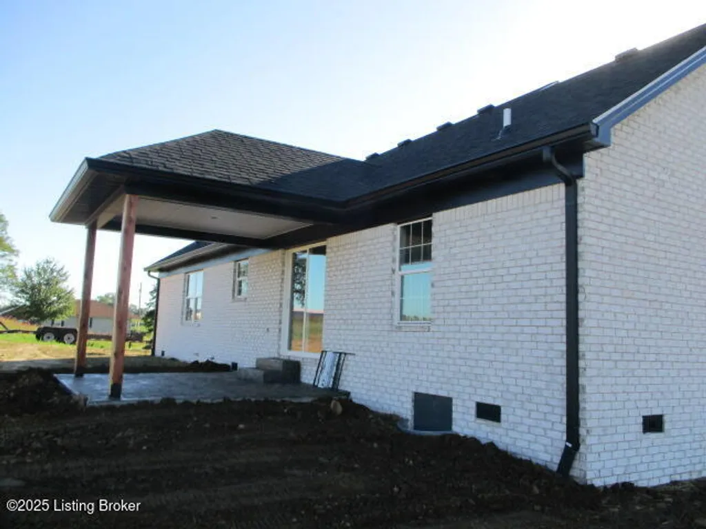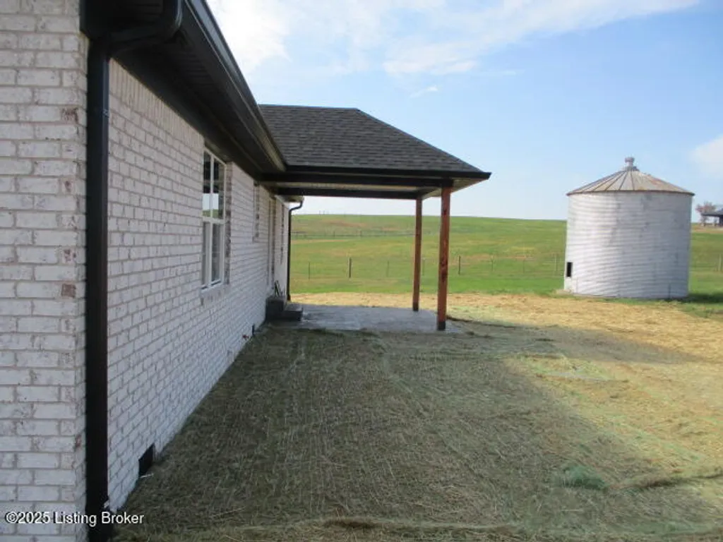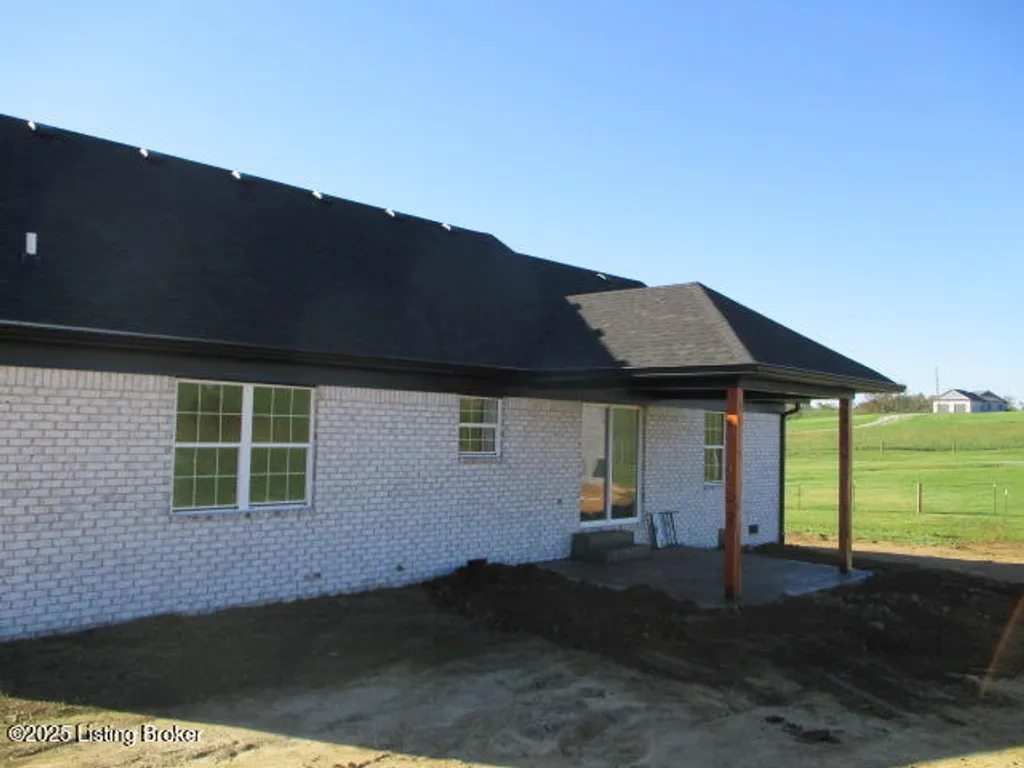 Discover your dream home with this stunning new construction! Featuring 3 bedrooms and 2 bathrooms, this property offers engineered flooring throughout and beautifully tiled bathrooms. The primary bathroom boasts a luxurious double vanity. You'll love the elegant trayed ceilings, beautiful granite countertops, and pantry closet. Enjoy outdoor living with a charming front porch and a spacious patio, both accented by stamped concrete. Cedar-stained shutters add a touch of rustic charm. Plus, a grain bin on the property offers endless potential for creative use. All this, conveniently close to town!