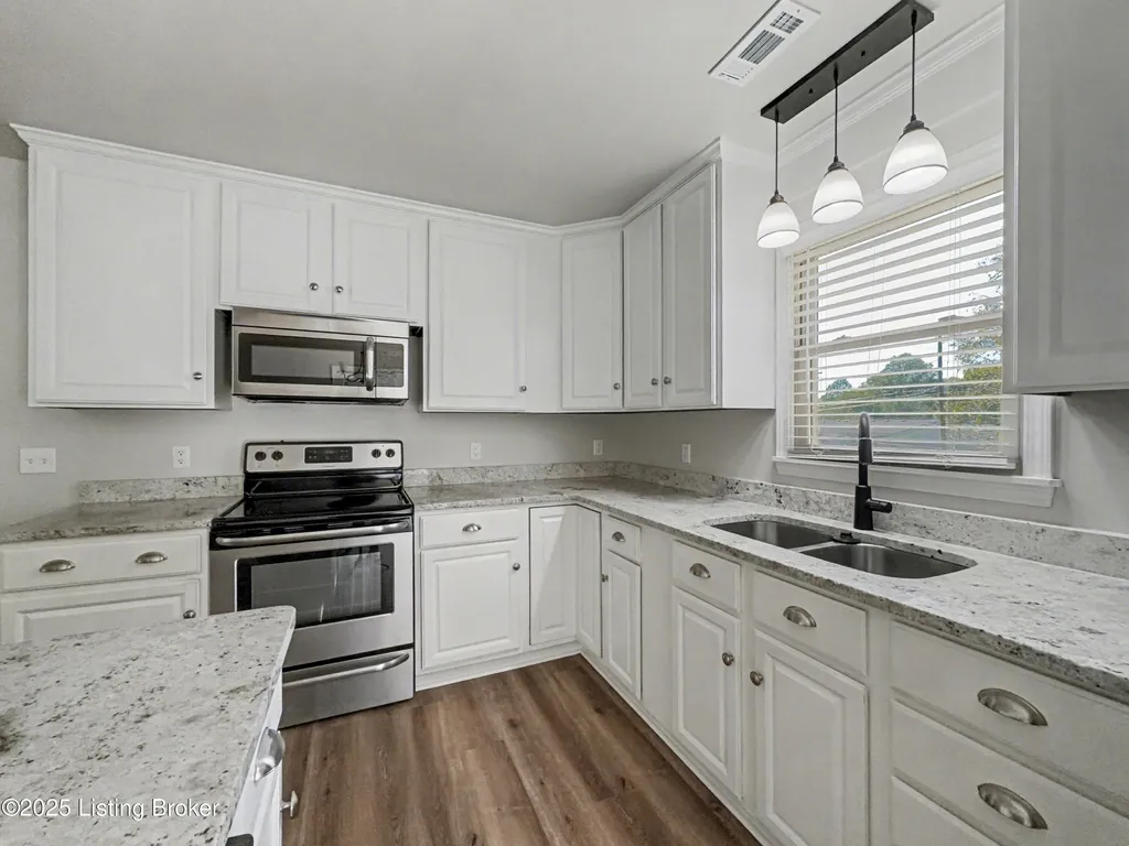Charming 3BR, 2.5BA brick ranch in Mt. Washington! This move-in ready 1,550 sq. ft. home features an open floor plan with LVT flooring and fresh paint throughout. The updated kitchen offers white cabinets, granite counters, a center island, and stainless appliances. The primary suite includes a renovated bath with tile shower. A second living area could be converted into a 4th bedroom, creating a split floor plan with a full bath potential. Enjoy the updated deck, covered front porch, and fully fenced backyard with shed. Great location near top-rated schools. A perfect starter home with modern updates.