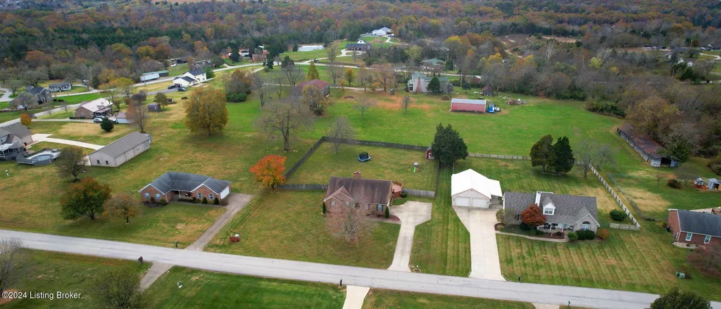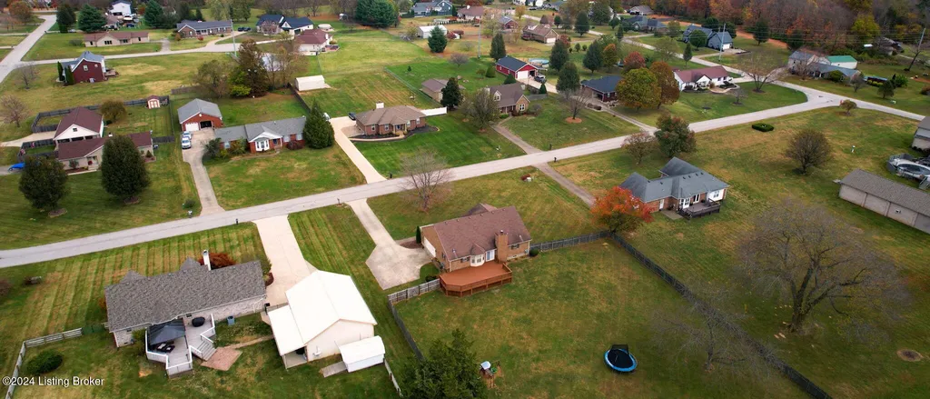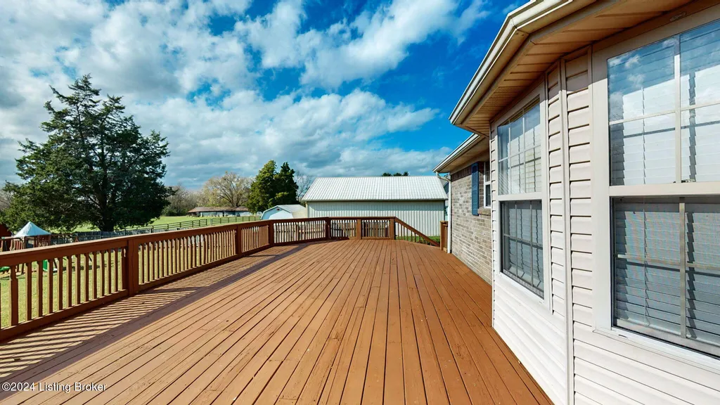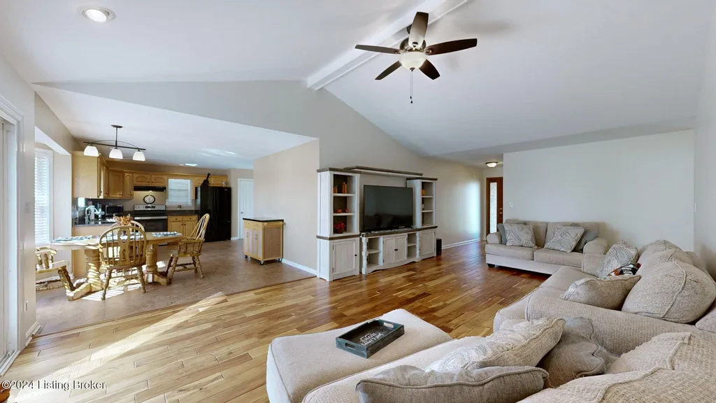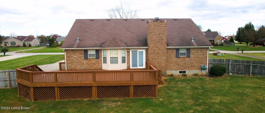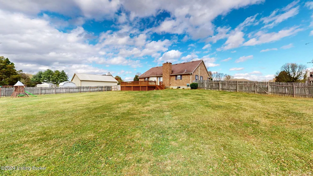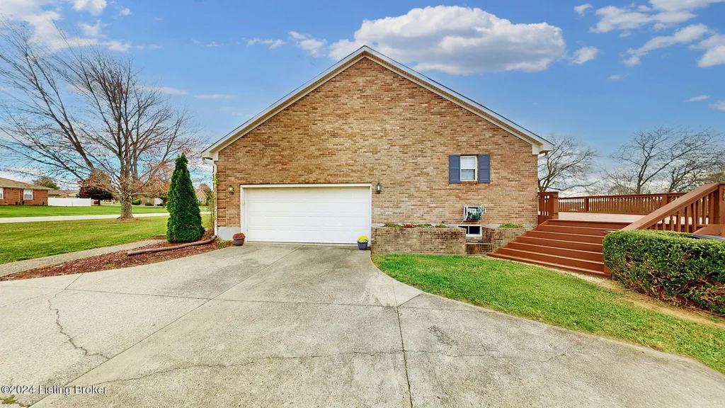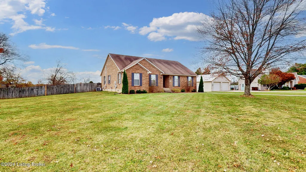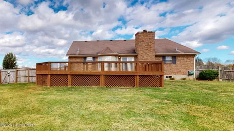 Located in Bullitt County, just over the Jefferson County line . This home sits on .8 acres of level ground in the very desirable Cedar Ridge Estates, conveniently located minutes from Broad Run Park, shopping, restaurants, and other services. Providing 1,624 sq ft of first floor living space, this open concept floor plan features a great room, eat-in-kitchen, 3 bedrooms, and 2 full baths. The eat-in-kitchen has granite countertops, beautiful wood cabinetry, panty, recessed lighting, dining area, and the appliances remain. The kitchen opens to the great room with a woodburning fireplace, gorgeous hardwood floors, vaulted ceiling, and access to the rear deck. The large primary bedroom features an ensuite bath, trey ceiling, new carpeting, and a walk in closet. Two additional bedrooms with new carpeting, and a full bath complete the main floor. The full basement with over 1,525 sq ft of finished space, provides a large family room with enough space for entertaining, new carpeting, 2 bonus rooms, and a full bath. There is a laundry room, and utility room, completing the basement areas. Radon mitigation was installed 2 years ago. A 2 car attached garage, large rear deck, and huge fenced rear yard complete this must see home.