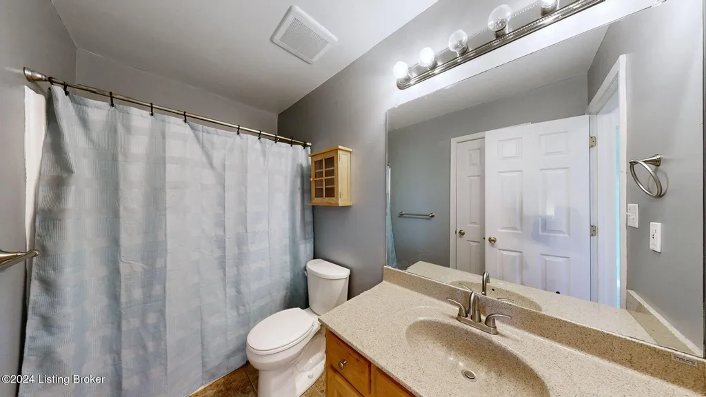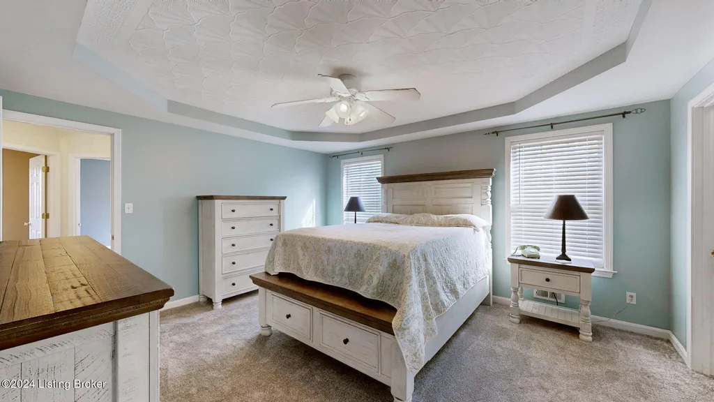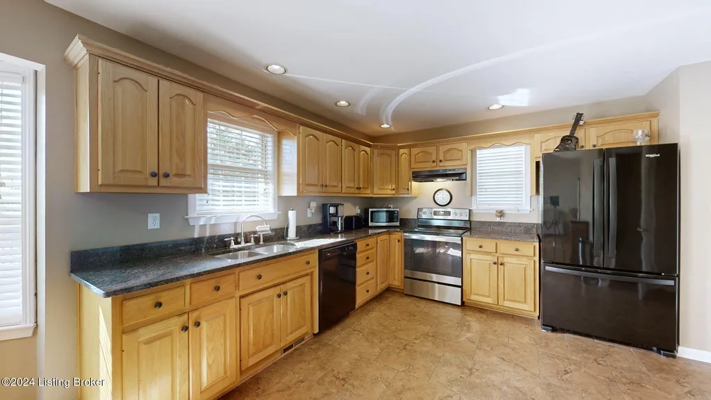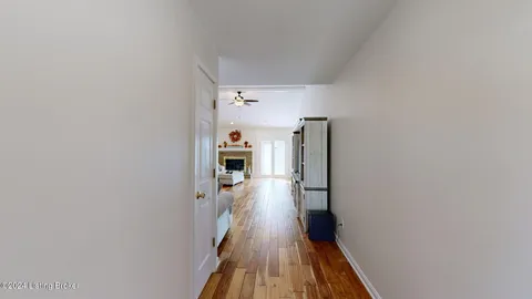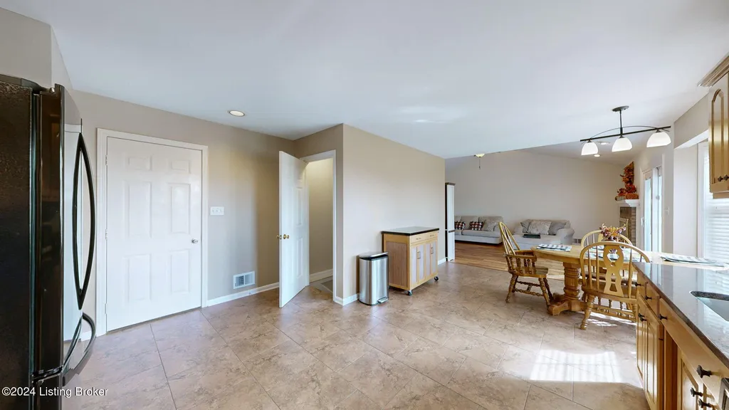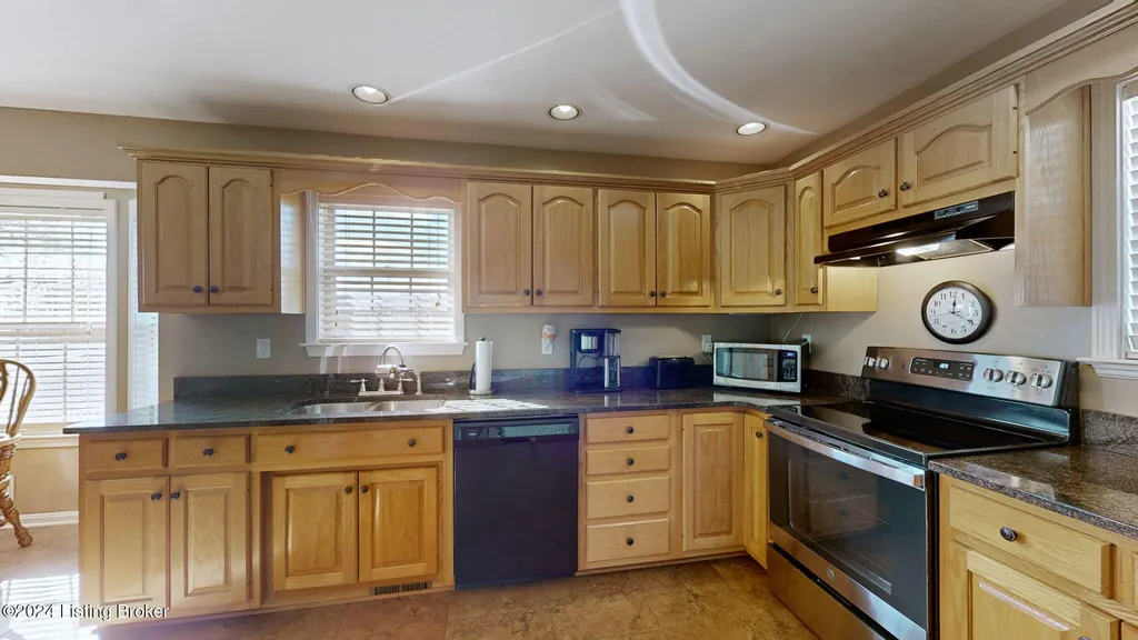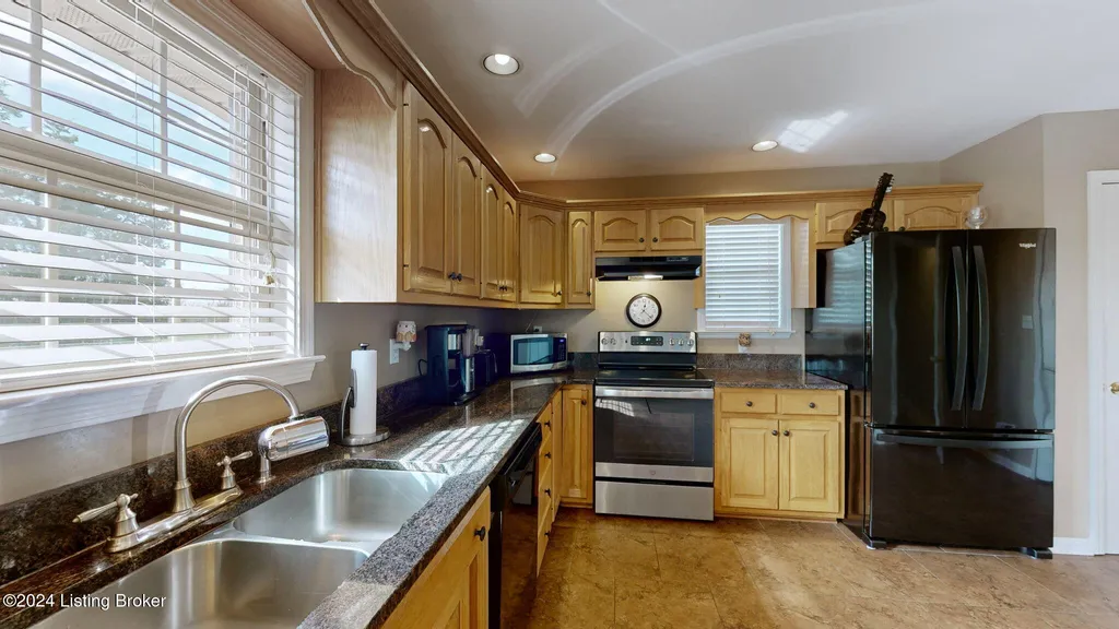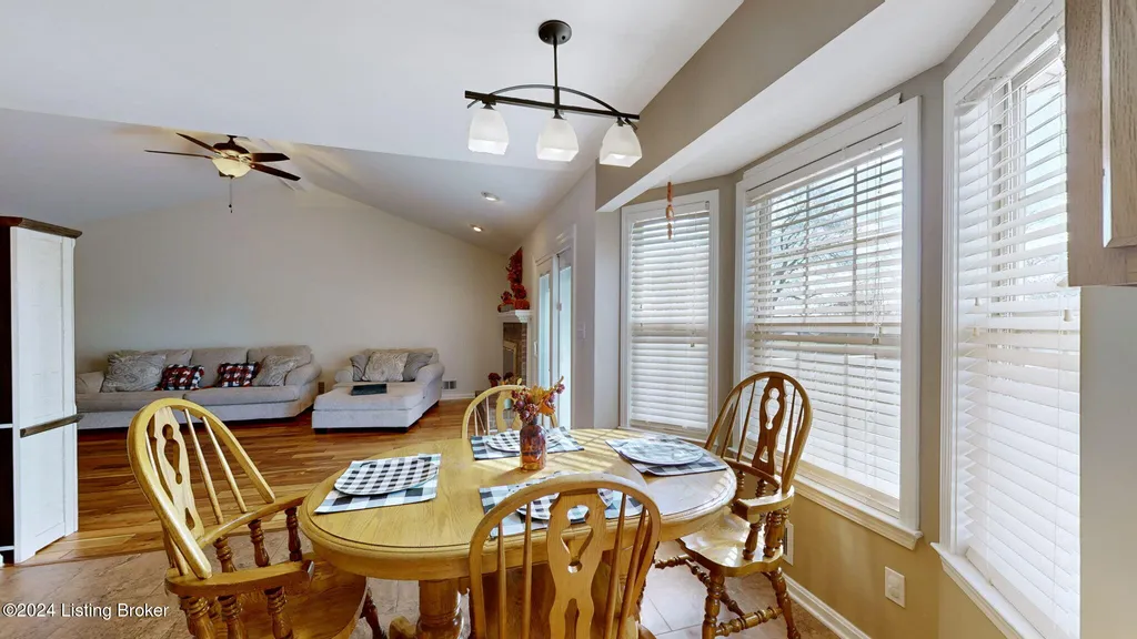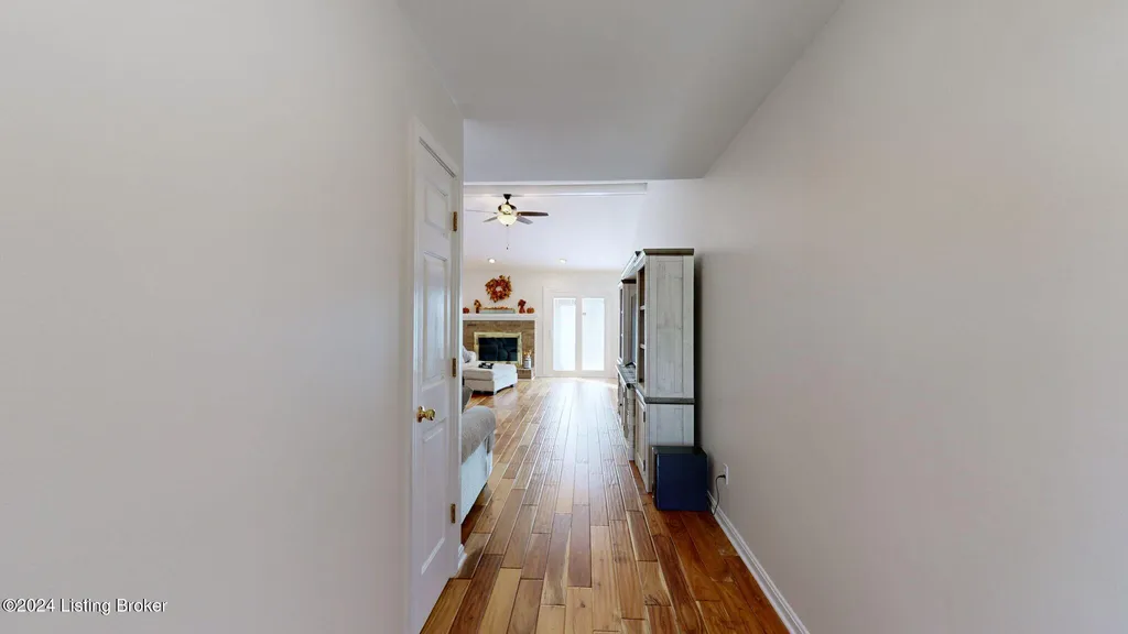 Located in Bullitt County, just over the Jefferson County line . This home sits on .8 acres of level ground in the very desirable Cedar Ridge Estates, conveniently located minutes from Broad Run Park, shopping, restaurants, and other services. Providing 1,624 sq ft of first floor living space, this open concept floor plan features a great room, eat-in-kitchen, 3 bedrooms, and 2 full baths. The eat-in-kitchen has granite countertops, beautiful wood cabinetry, panty, recessed lighting, dining area, and the appliances remain. The kitchen opens to the great room with a woodburning fireplace, gorgeous hardwood floors, vaulted ceiling, and access to the rear deck. The large primary bedroom features an ensuite bath, trey ceiling, new carpeting, and a walk in closet. Two additional bedrooms with new carpeting, and a full bath complete the main floor. The full basement with over 1,525 sq ft of finished space, provides a large family room with enough space for entertaining, new carpeting, 2 bonus rooms, and a full bath. There is a laundry room, and utility room, completing the basement areas. Radon mitigation was installed 2 years ago. A 2 car attached garage, large rear deck, and huge fenced rear yard complete this must see home.