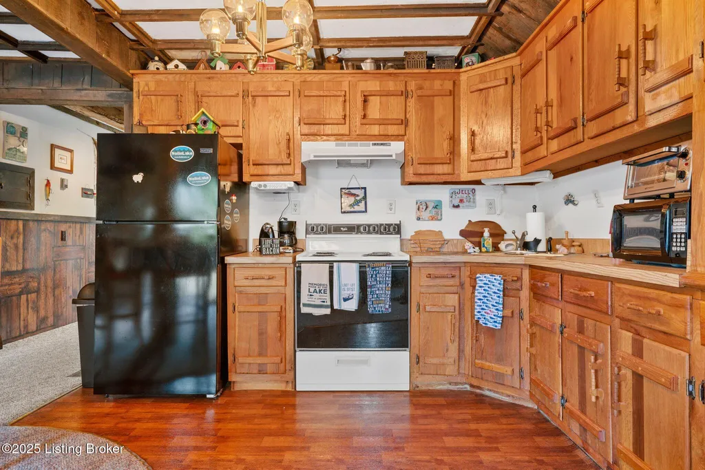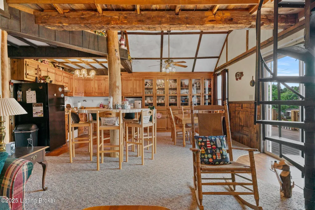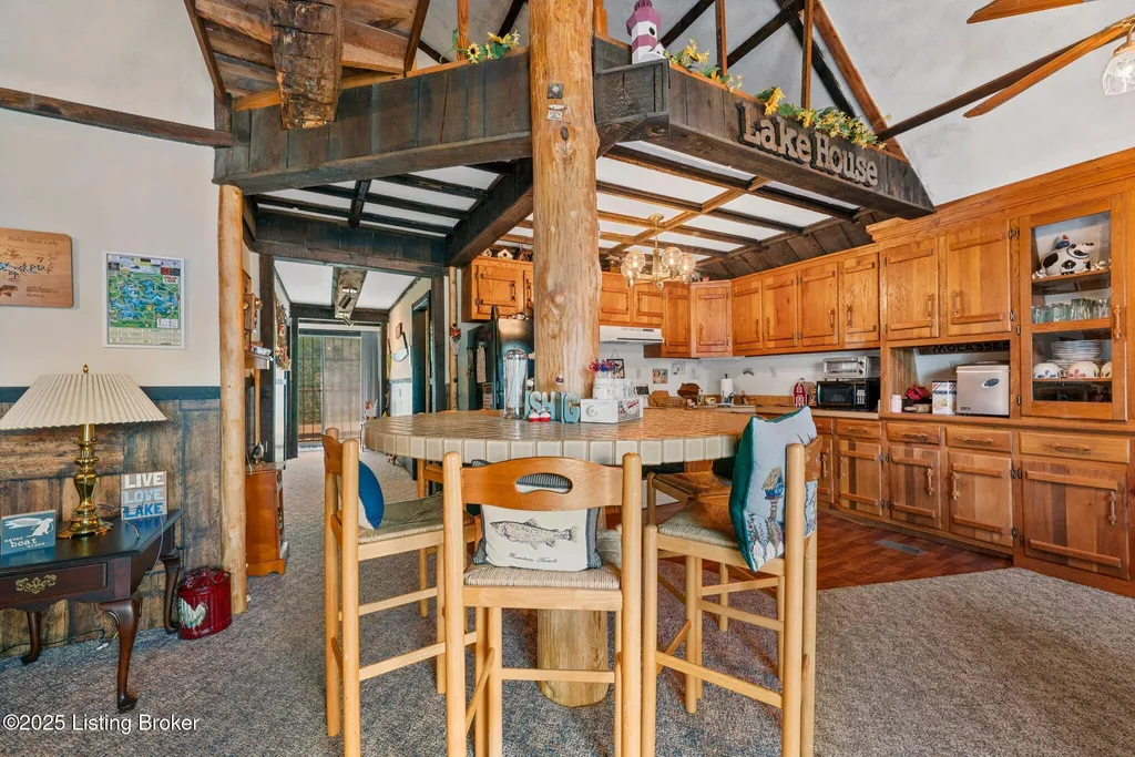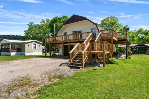 Welcome to your ideal lake getaway! This cozy and inviting 2-bedroom, 2-bath home features a bonus area for additional sleeping space, making it perfect for hosting friends and family. Enjoy ample entertaining areas with a wraparound deck on three sides of the home, a covered pavilion, and a designated fire pit area - all designed for year-round enjoyment. While relaxing on the side or back deck, take in the peaceful water views and soak up the tranquil lake atmosphere. There's plenty of parking, including a large driveway, two-car carport, and a two-car garage located underneath the home (with a laundry area). Plus, there's an additional detached garage behind the house for even more storage or workspace. . The home is situated just around the corner from the dock easement, and you'll find Dog Creek boat ramp less than a minute away - ideal for quick access to the water. Nearby conveniences include BUOYS at the Lodge, Day's Pro Bass, and a Dollar Store for all your lake essentials. As an added bonus, all furniture and furnishings remain with an acceptable offer, making this property truly turn-key and move-in ready. A second laundry hookup is also available inside the home for added convenience. Don't miss your chance to own this charming, fully furnished lake area home with endless possibilities for relaxation and entertainment! There is a dock to transfer pending COE approval and light restrictions do apply. Don't delay, give the listing agents a call today! We Know Nolin!