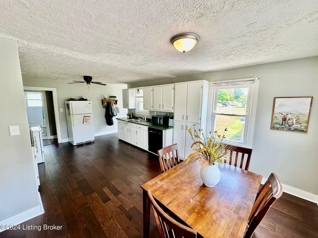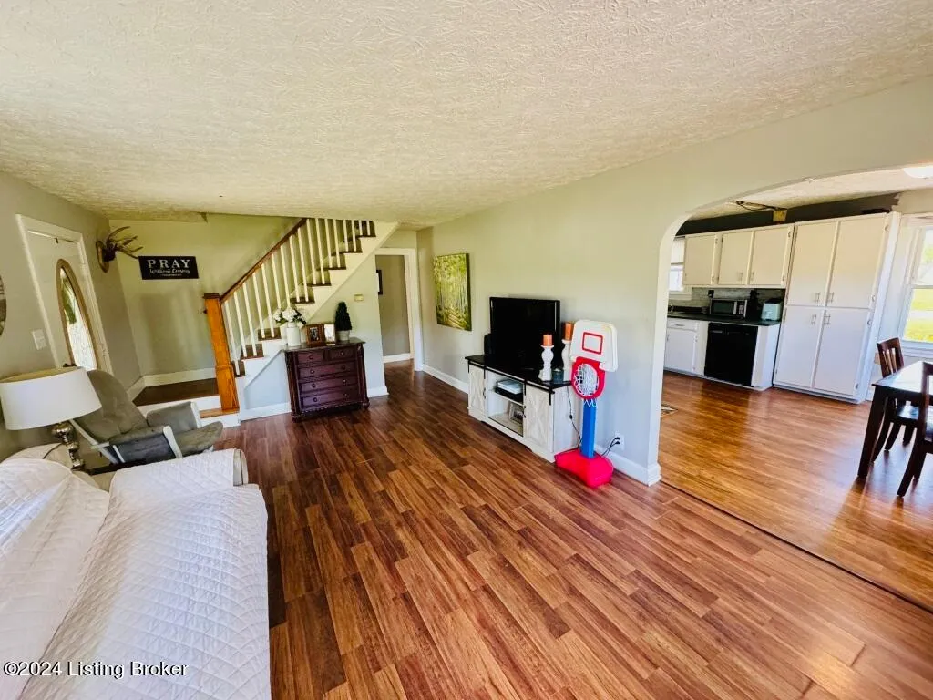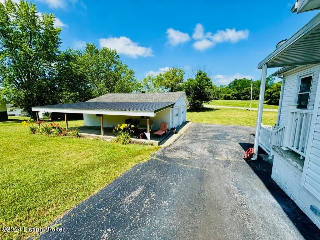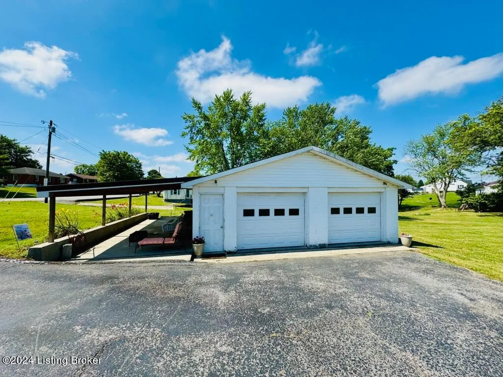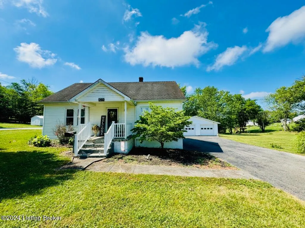This cute home on a corner lot is ready for its new owner featuring a big yard with two car garage with lean-to sitting area to relax in the evening. Inside you'll find a spacious living room, eat-in dining area with open concept into the kitchen, first floor primary bedroom, another bedroom or first floor laundry room, two great size bedrooms upstairs and a partial basement ideal for storage. You'll love everything this home has to offer and it is conveniently located in town!