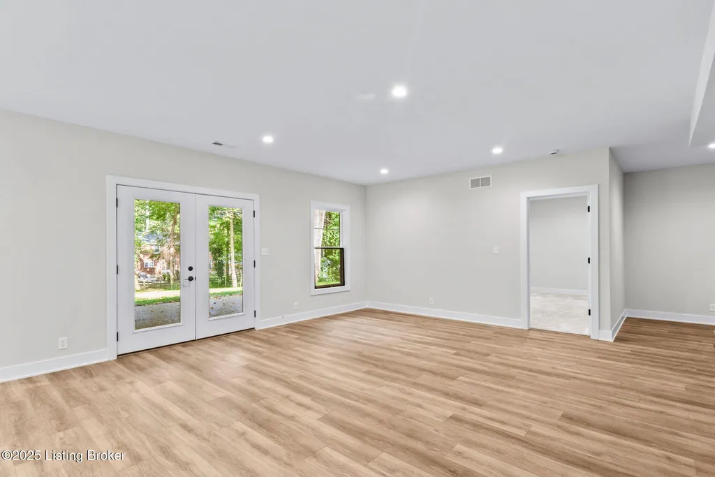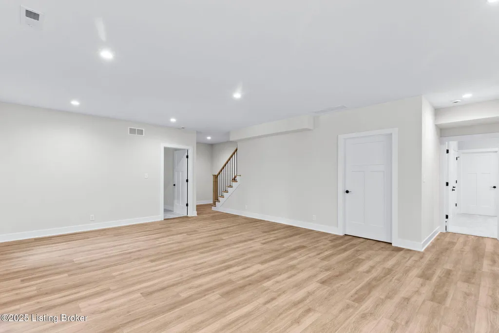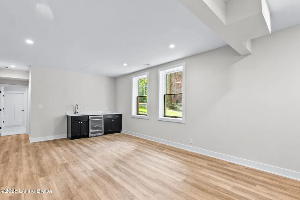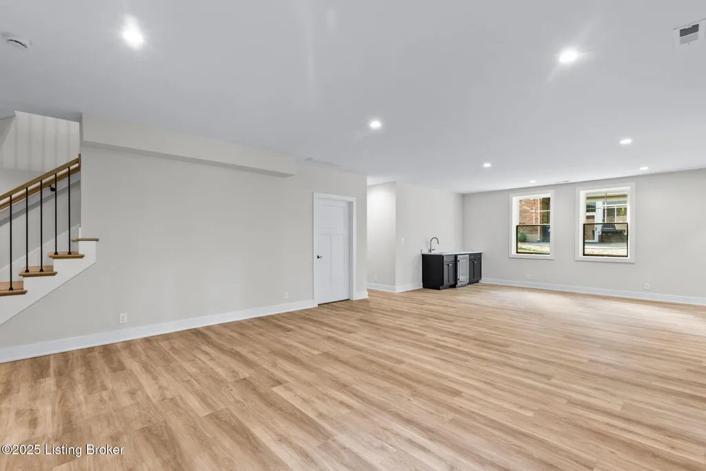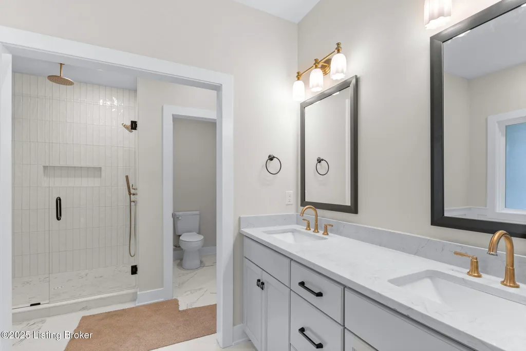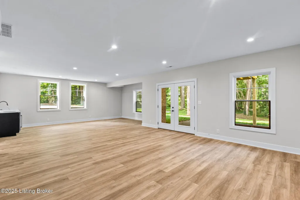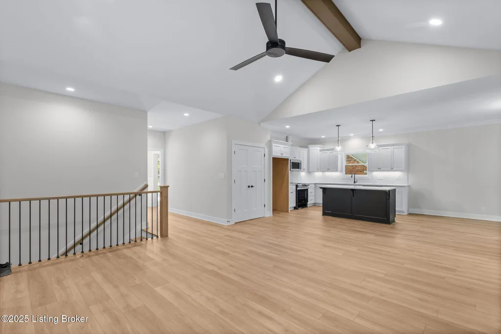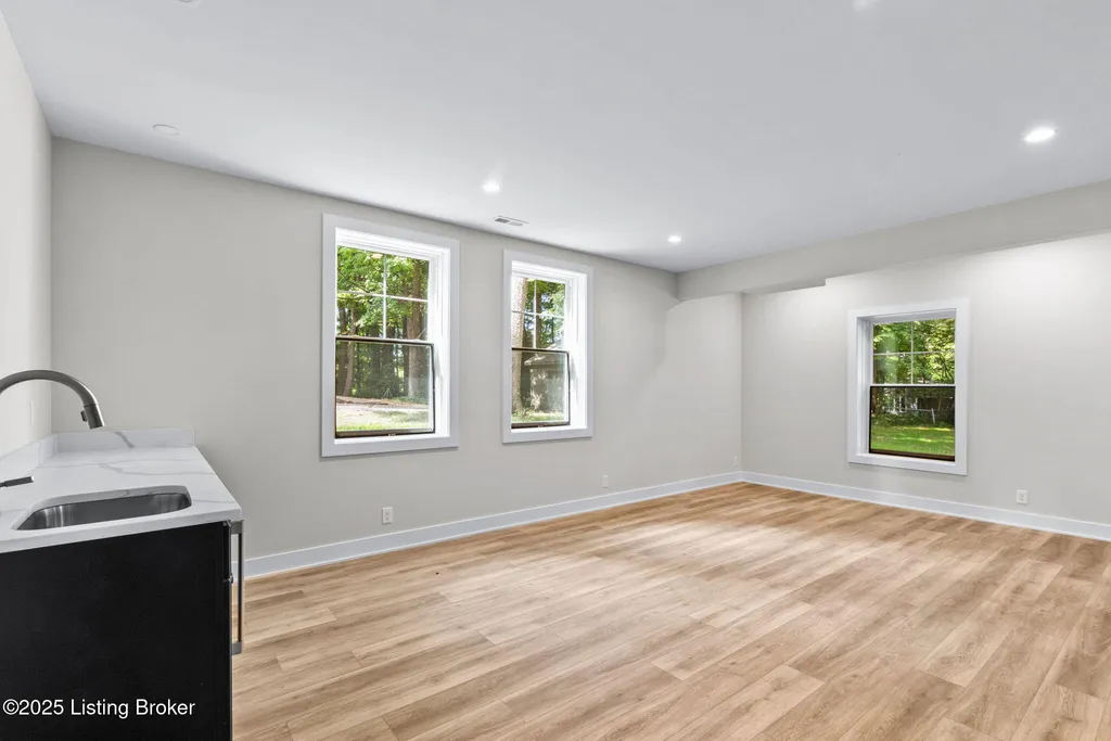 Tucked away in the heart of highly sought-after Pewee Valley, this brand-new construction offers an impressive blend of timeless craftsmanship and modern design. The all brick-and-stone walkout ranch sits on a private, wooded .76-acre lot, giving you the rare combination of space, privacy, and convenience. Step inside through custom double wood entry doors to find soaring ceilings, abundant natural light, and an open floor plan that's perfect for both everyday living and entertaining. The great room is the centerpiece of the home, featuring a vaulted ceiling, a striking shiplap-accented gas fireplace, and seamless flow into the gourmet kitchen. Here you'll find a massive island, quartz countertops, stainless steel appliances with a gas range, and elegant finishes throughout. The primary suite is a true retreat, highlighted by a custom wainscoting accent wall, spa-like bathroom with a large soaker tub, double vanity, oversized walk-in shower with custom tile, and French gold fixtures. A giant walk-in closet provides more than enough space to stay organized. Each of the five bedrooms is generously sized with walk-in closets, and all three full bathrooms are finished with high-end details. Downstairs, the fully finished walkout basement expands the living space with a large open area, media room potential, a full wet bar with beverage refrigerator, and two huge bedrooms with a full bath. There's also plenty of unfinished storage. Outdoors, you'll enjoy a spacious rear deck and a patio below, both overlooking the private backyard surrounded by mature trees. Additional highlights include high-end LVP flooring, upgraded lighting throughout, an oversized two-car garage, and a large laundry room. The location offers quick access to I-265 via Old Henry Road, and is just minutes from historic Pewee Valley, Middletown, dining, shopping, parks, and award-winning Oldham County schools. This home truly checks every box; space, luxury, and convenience, all wrapped up in one extraordinary property.