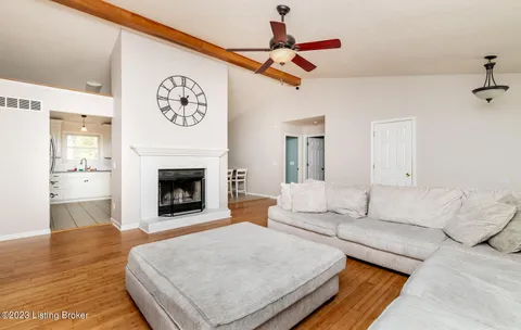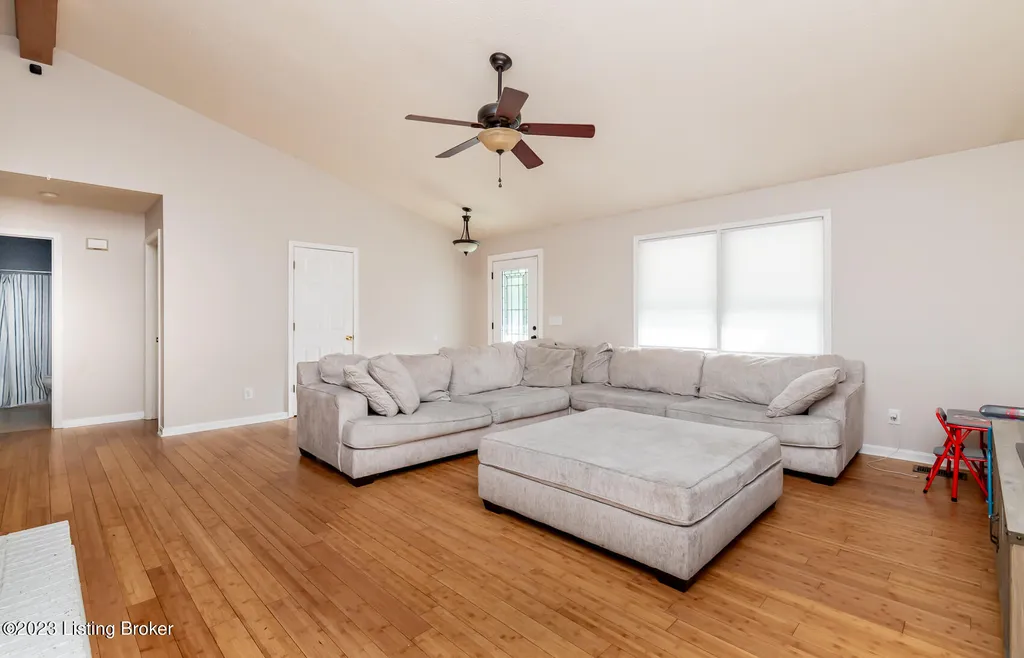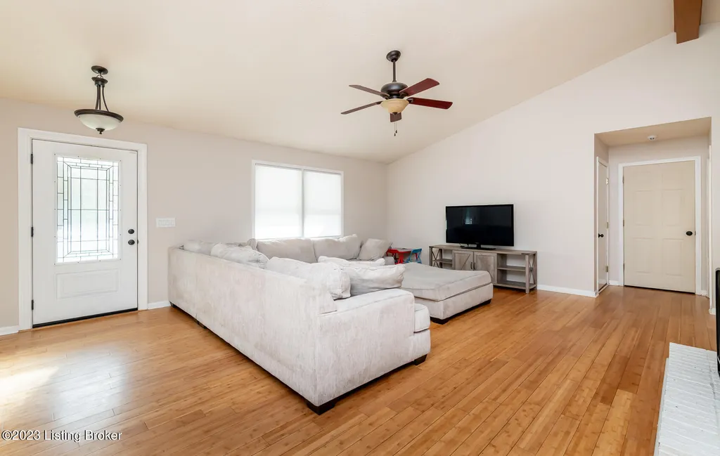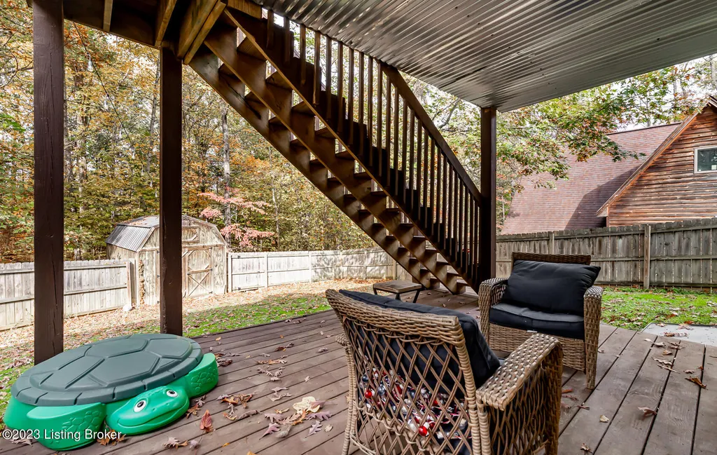 Excellent opportunity to make this 4 bedroom Doe Valley ranch with a walk-out basement your new home! This home boasts tons of curb appeal with a welcoming covered front porch while the privacy fenced back yard offers picturesque, tree-lined views. When you enter the home you will notice the open floor plan and vaulted ceiling with an exposed beam. The fireplace serves as a focal point for the living area and creates a warm environment. Make your way to the eat-in kitchen that offers ample cabinet space for storage and a breakfast bar counter top for additional seating. A door from the dining area leads outside to the deck overlooking the wooded back yard area. The primary bedroom boasts an en suite bathroom and spacious walk-in closet allowing plenty of room for storage. There are two additional generously sized bedrooms and a second full bathroom on the main level. As you make your way to the walk-out basement you will find 2 separate living areas as well as a 4th bedroom offering lots of privacy. The laundry room is spacious with a window allowing natural light to flow throughout the room. A door from the basement leads directly to the covered lower level deck within the fenced back yard. As a resident of the gated Doe Valley neighborhood you will have access to all of the amenities including the pool, golf course, tennis court, playground, marina, and more. Don't miss this opportunity - schedule a private tour today!