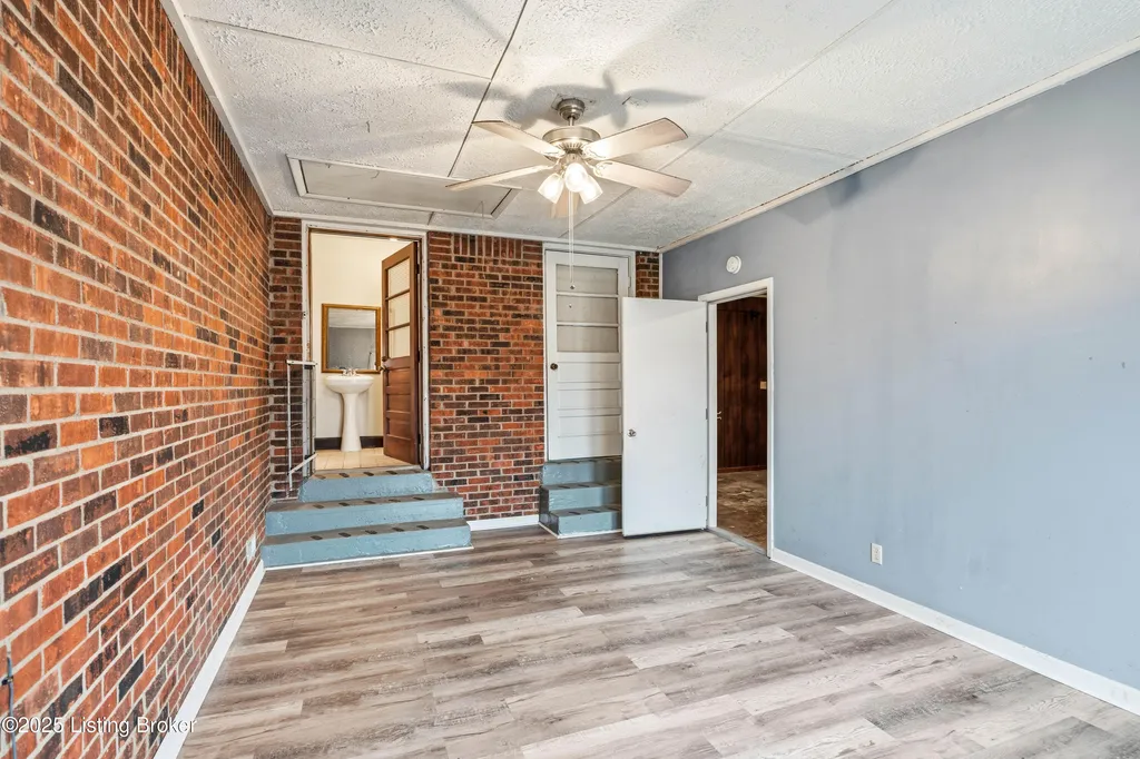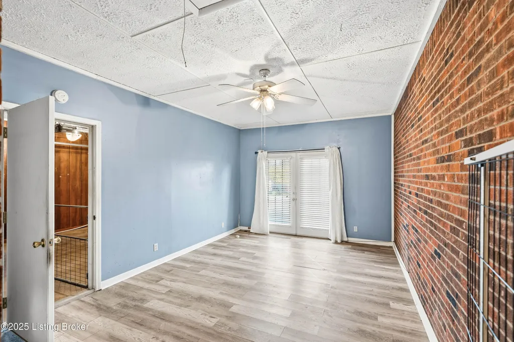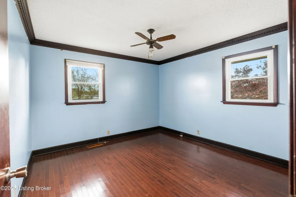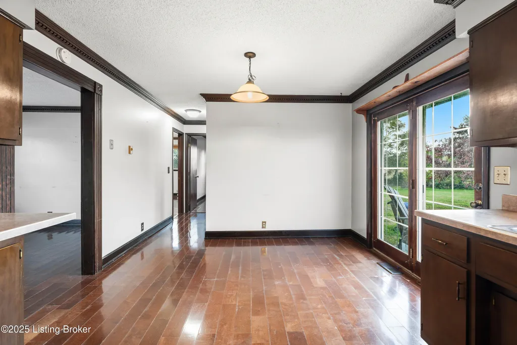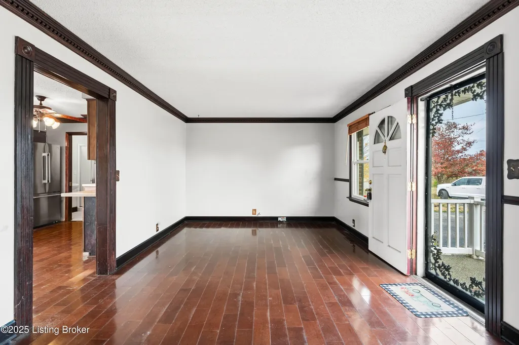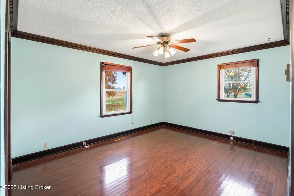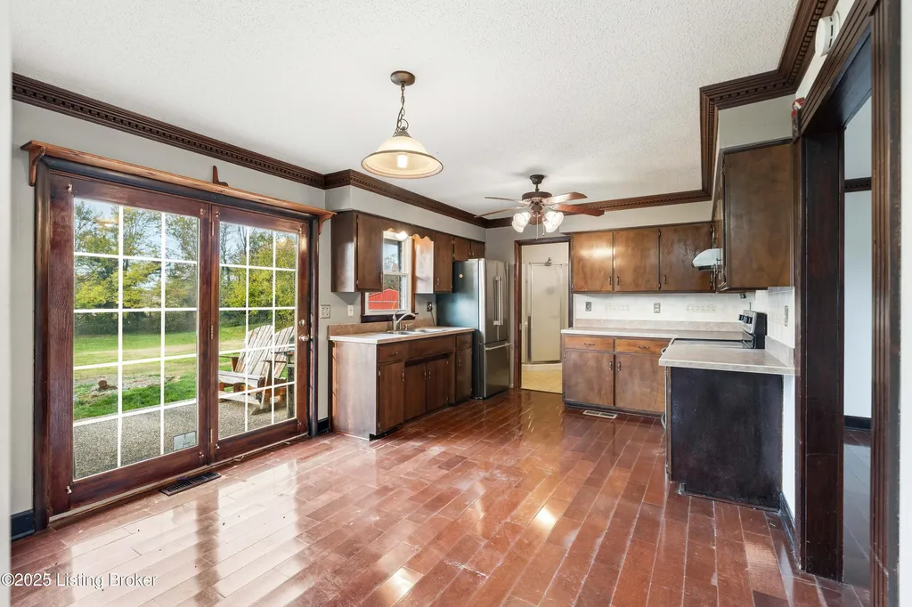Irvington brick home Metal roof est. 3-4 yrs Replacement windows Engineered hardwood floors New HVAC 2025 Near schools and shopping Located along Highway 477 just outside of Irvington, this well-maintained 3-bedroom, 2-bath brick home blends comfort and updates throughout its 1,224 sq ft layout. The black metal roof and full replacement windows offer lasting value, while engineered hardwood flooring and crown molding add warmth and detail to every room. The kitchen features a stainless-steel stove and French-door refrigerator, with convenient flow to the dining area and living room. A cedar-lined hall closet and large front bedroom closet provide extra storage. The hall bath includes a porcelain tile shower floor, freestanding vanity, and modern fixtures. The home is served by by an electric hot water heater and a new HVAC system installed in March 2025. Outdoor features include an aggregate-concrete front porch, concrete back patio with paver area, blacktop driveway, and a shed with a tall roof for additional storage. The small propane tank and no HOA restrictions add convenience and flexibility. Conveniently close to Irvington Elementary School (0.6 mi), Save A Lot grocery (0.8 mi), and approximately 25 minutes to Fort Knox this property offers small-town living with easy regional access.