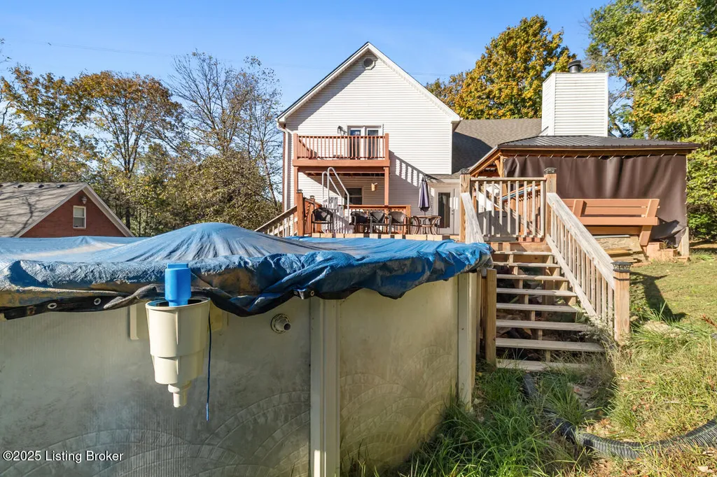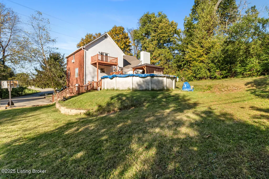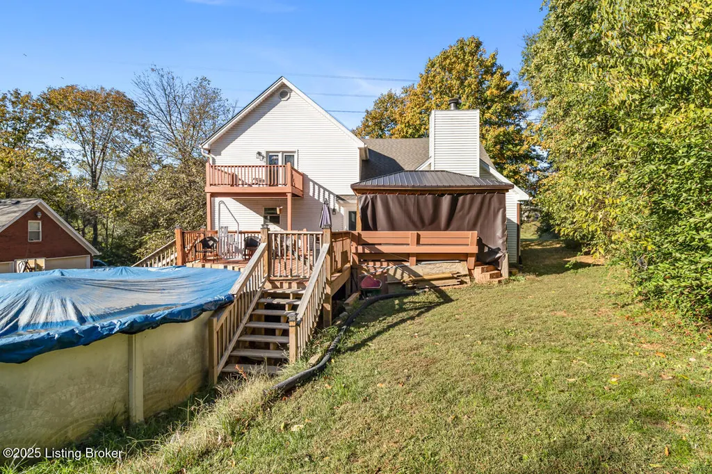 There is so much to love about this 5 bedroom, 2.5 bath home situated on a sprawling 2.24 acre lot with mature trees providing plenty of privacy! Lots of updates - the seller has replaced the majority of the flooring and added some fresh paint, a new door, and is in the process of replacing a few of the windows! This home features a 3 car garage, above ground pool, and a finished walk-out basement. A long driveway leads you to the home nestled amongst the trees that create a natural barrier and a park-like setting. Make your way inside where you will find a stunning living room with a soaring vaulted ceiling and stone fireplace that serves as the focal point of the room. The fireplace is flanked by floor to ceiling windows that allow natural light to pour inside. This room opens up to the kitchen that boasts a huge island and newer stainless steel appliances. (Dishwasher, stove, and refrigerator were replaced in 2022). You will have room in the kitchen for a table but there is also a formal dining room for more elaborate meals. A door just off the kitchen leads to your own backyard oasis where you will have a sun deck and pool - the perfect place to escape the summer heat. There is a convenient first floor bedroom with a vaulted ceiling and palladium window. The second floor is dedicated to the oversized primary suite that offers a huge walk-in closet that allows for plenty of storage. The en suite primary bathroom features a jetted tub and 2 vanities along with a separate shower. This room has a private balcony that overlooks the backyard and pool area. There are 3 additional bedrooms in the finished basement that also offers a spacious living area that has a door leading to the patio off the side of the home. The detached 3 car garage has a finished storage room above the parking area. Updates to the home include the AC in the home that was replaced 3 years ago, the roof was replaced 4 years ago, and the electric panel was also updated. Both decks on the home have been added within the last 4 years. Don't miss your chance to make this house your new home - schedule a showing today!