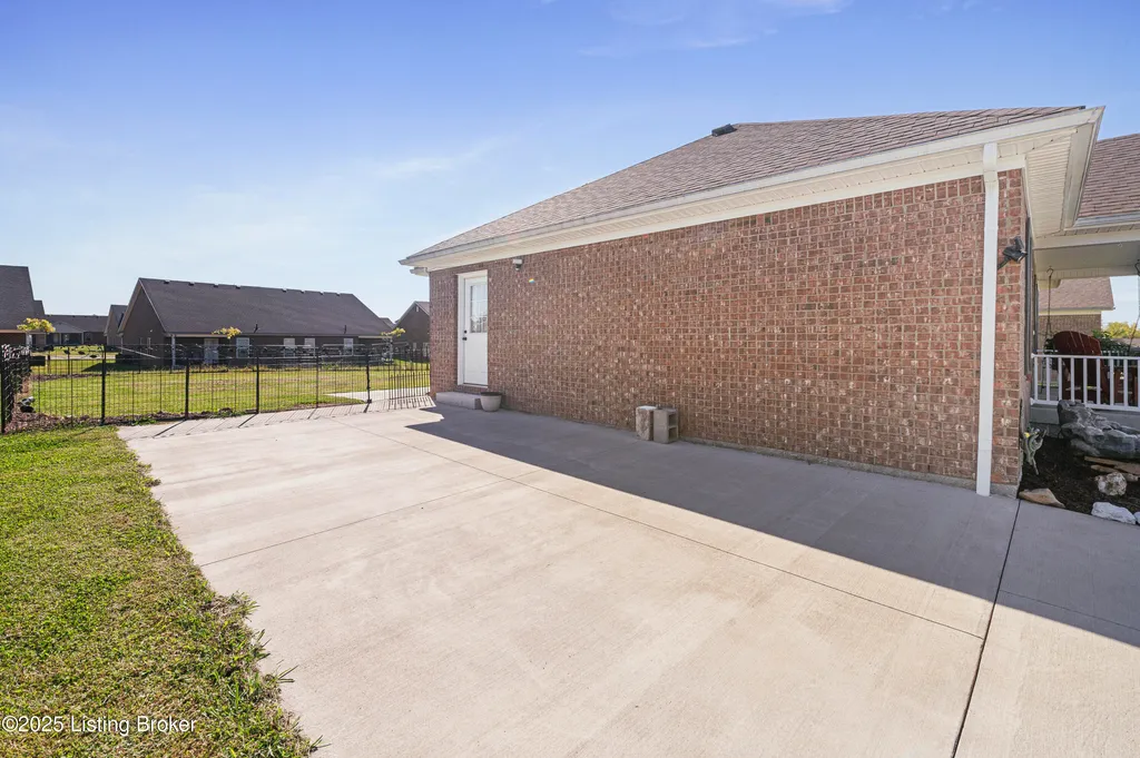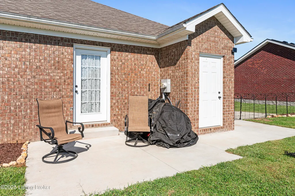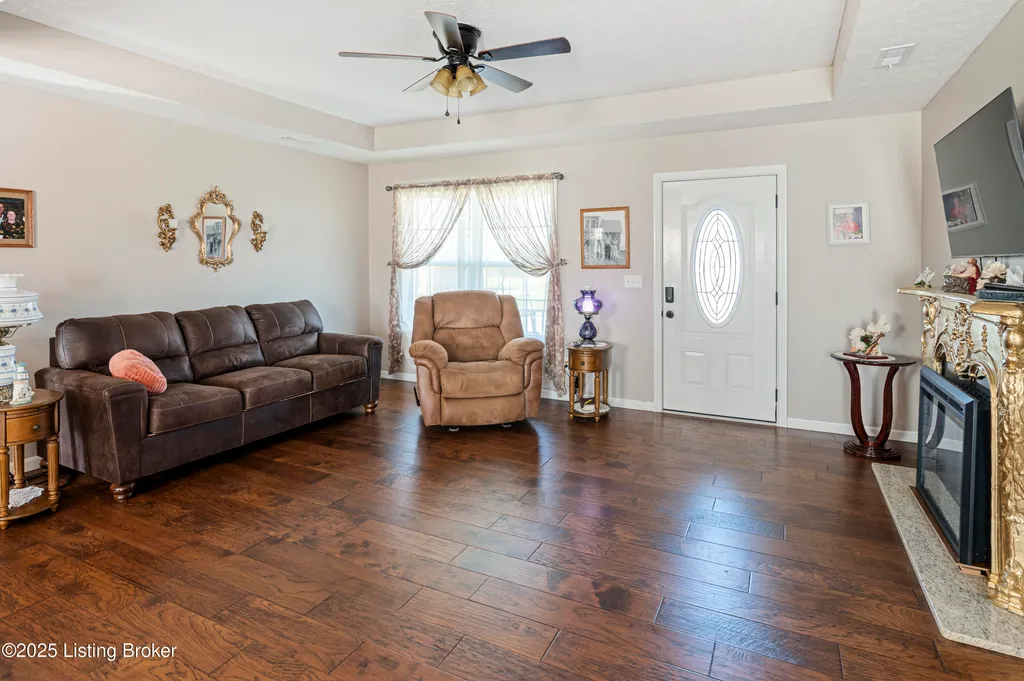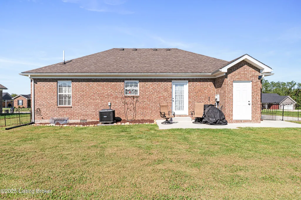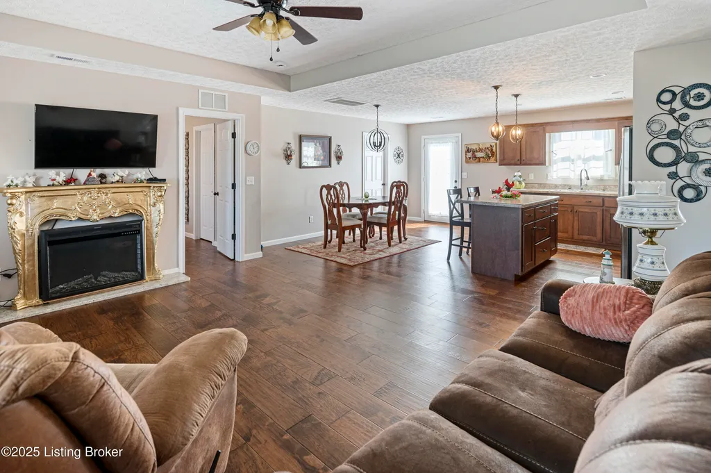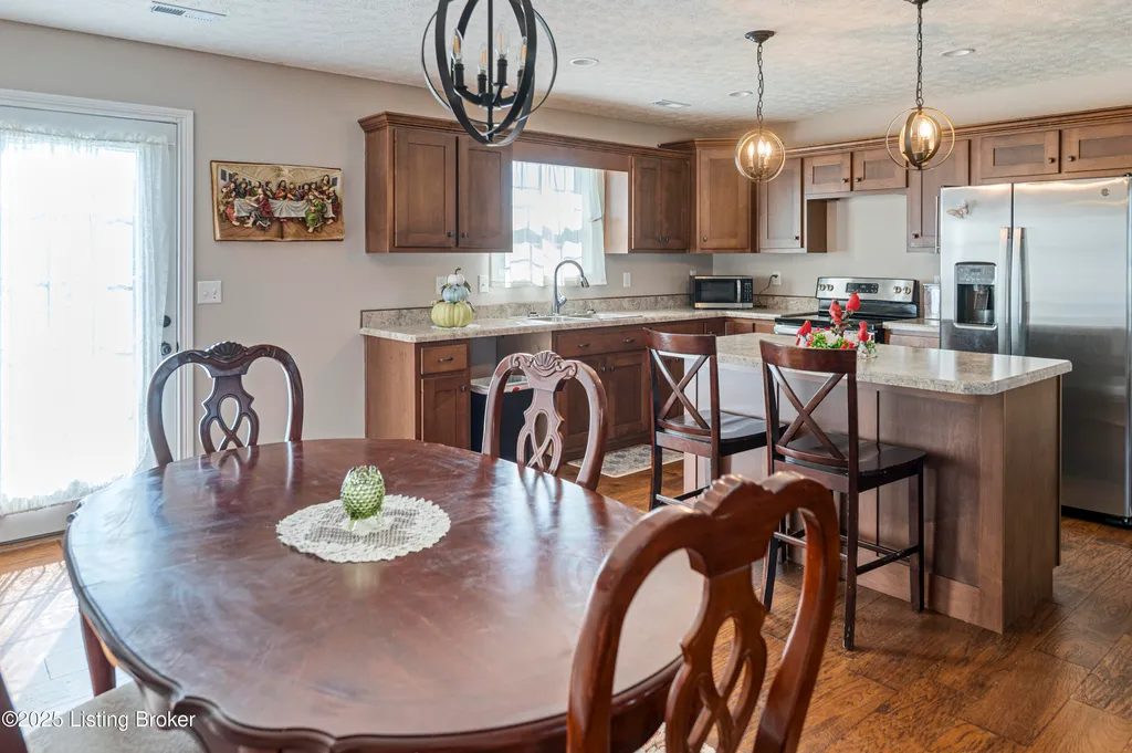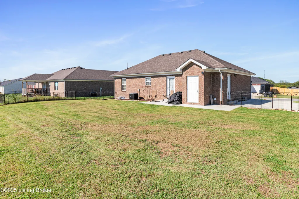Located in Historic Bardstown, this nearly new ranch home offers modern comfort with small-town charm. Just two years old, it features 3 bedrooms and 2 baths with an open, airy floor plan. Gleaming hardwood floors and trey ceilings add character, while the spacious kitchen and dining area provide plenty of room for gatherings and daily living. The private primary suite offers a relaxing retreat with its own bath with walk-in shower and walk-in closet. Hypoallergenic filter system and new flex vents help keep the home fresh and healthy. Enjoy the covered front porch or unwind on the back patio and beautifully landscaped grounds. Built-in storage at the rear of the home adds convenience, making this move-in ready property both inviting and effortlessly stylish.