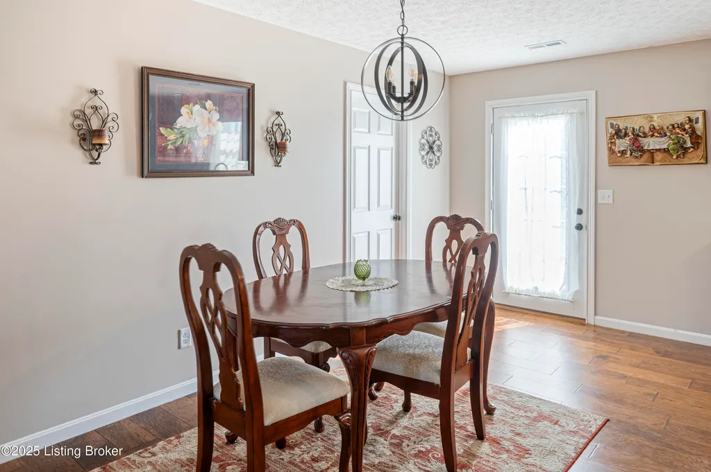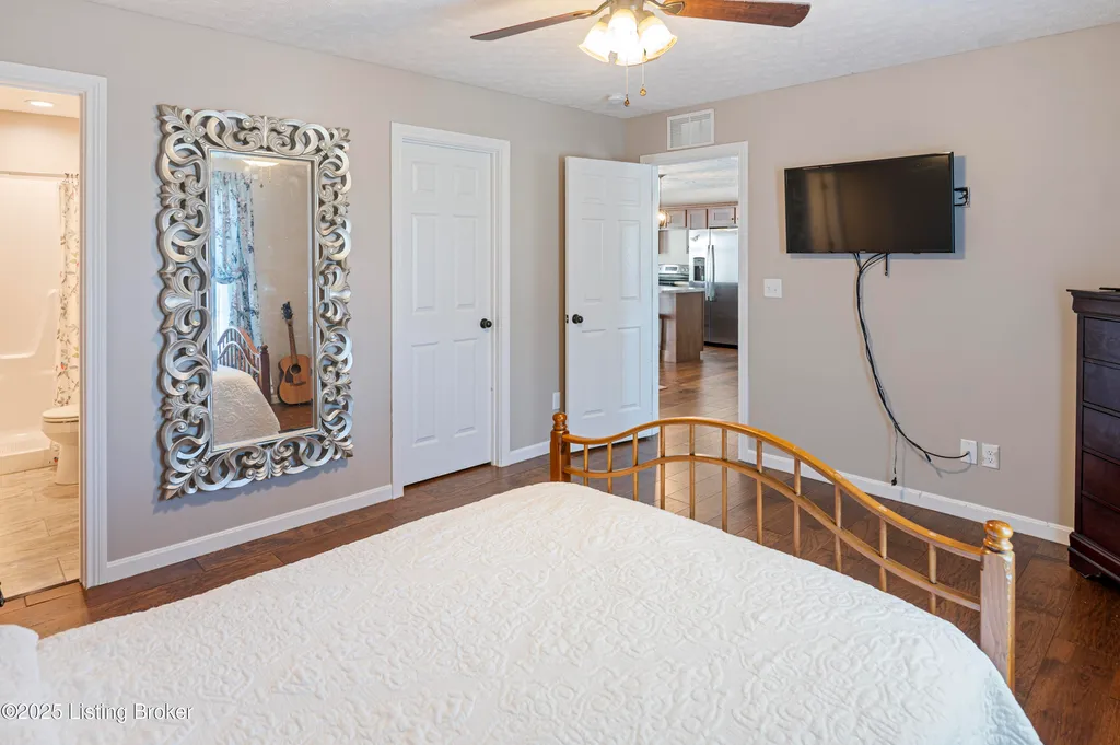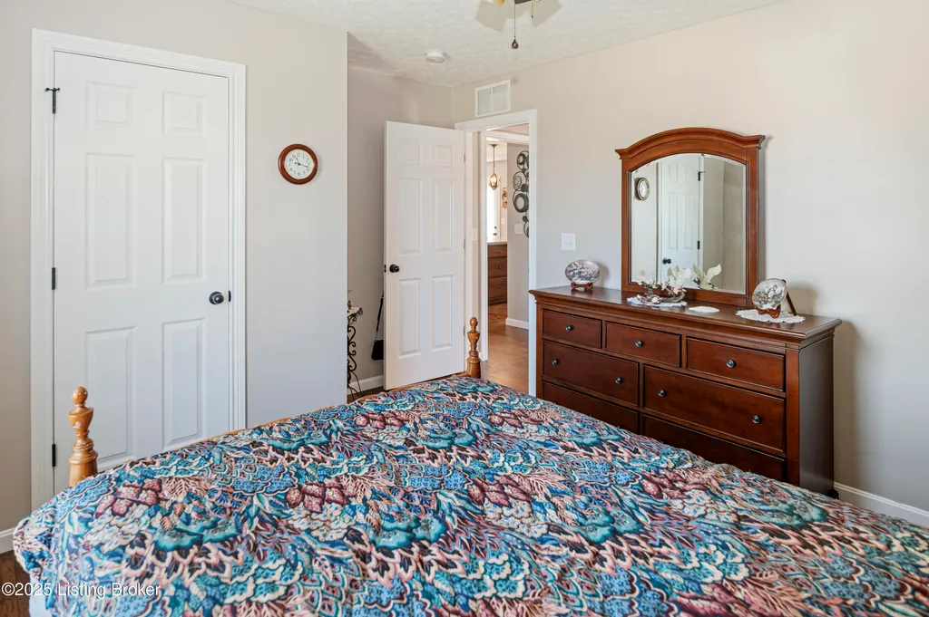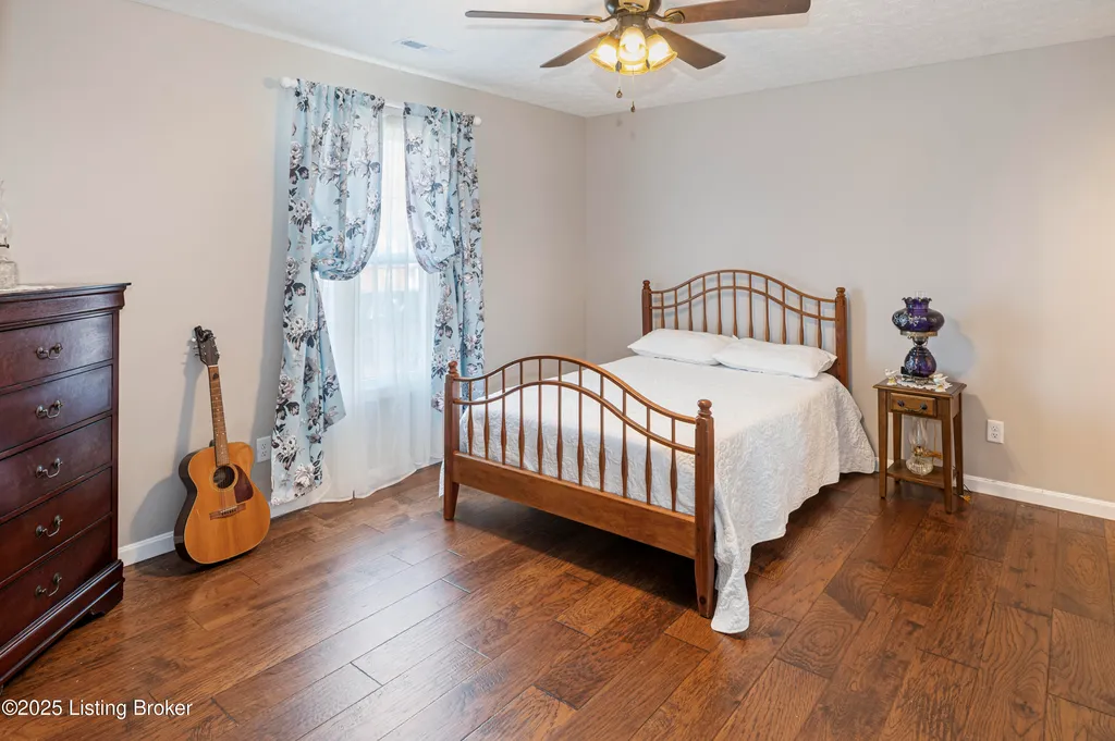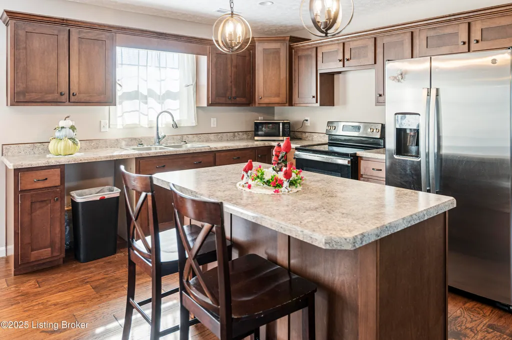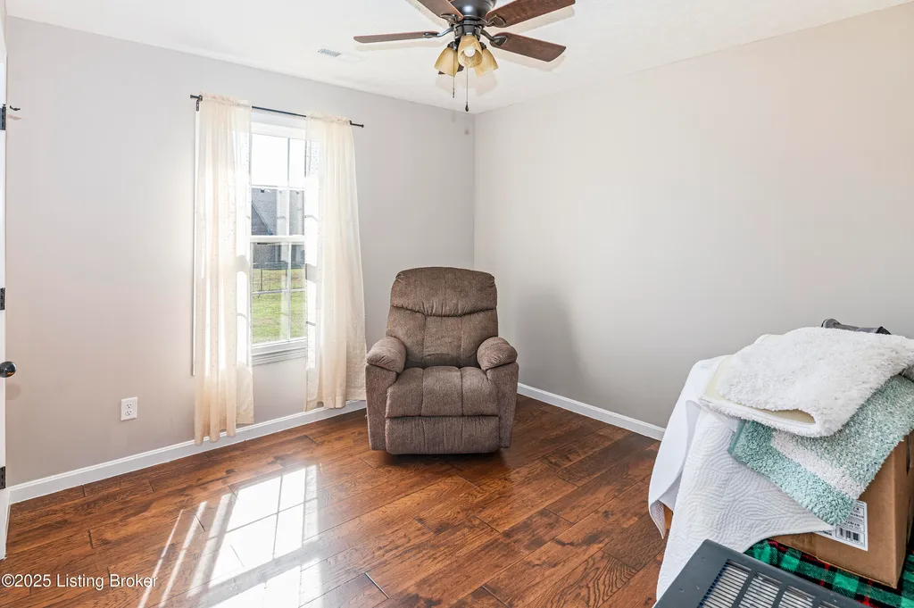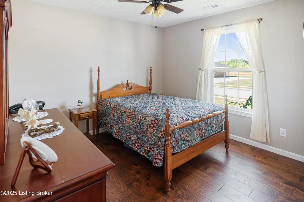 Located in Historic Bardstown, this nearly new ranch home offers modern comfort with small-town charm. Just two years old, it features 3 bedrooms and 2 baths with an open, airy floor plan. Gleaming hardwood floors and trey ceilings add character, while the spacious kitchen and dining area provide plenty of room for gatherings and daily living. The private primary suite offers a relaxing retreat with its own bath with walk-in shower and walk-in closet. Hypoallergenic filter system and new flex vents help keep the home fresh and healthy. Enjoy the covered front porch or unwind on the back patio and beautifully landscaped grounds. Built-in storage at the rear of the home adds convenience, making this move-in ready property both inviting and effortlessly stylish.