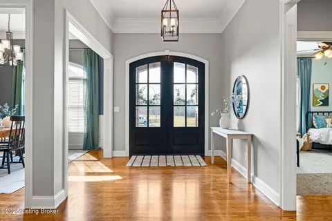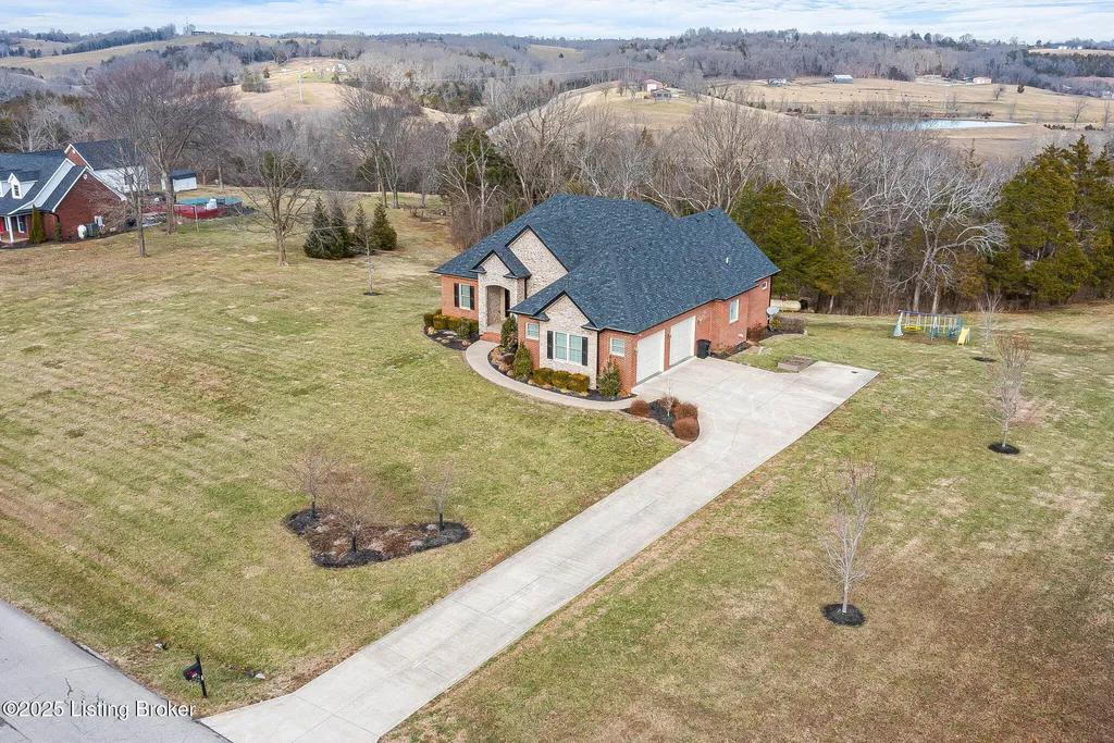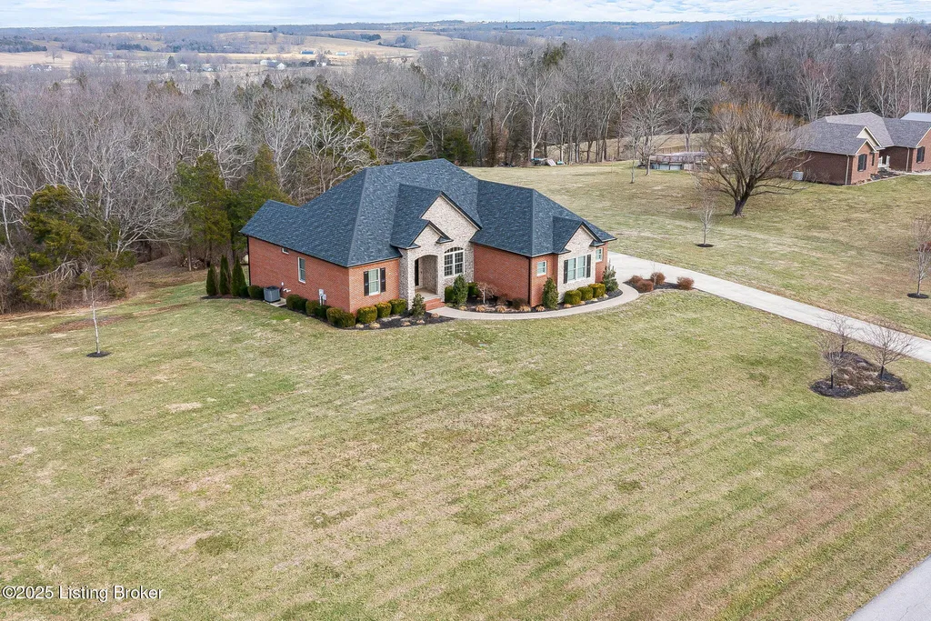 This beautifully crafted home is designed with comfort and style in mind. You are welcomed by a spacious foyer adorned with 4-piece crown molding setting the tone for the rest of the home. The main floor contains plank hardwood floors adding warmth and character to this rural location. The open layout includes a dining area and a cozy breakfast nook. The kitchen is a dream with a 6-burner gas range, a custom vent hood, ceiling-high cabinets, and a pot filler for convenience. The gas propane fireplace with a stone surround offers a stunning focal point for the living room. The master bedroom is a true retreat with a double tray ceiling, ample Windows and plank hardwood flooring. The adjoining primary bathroom is equally impressive with a luxurious soaking tub, dual vanities, a spacious walk-in shower, and a large closet for all your storage needs.((Functional and Convenient Features:(Split floor plan ensures privacy and comfort for all members of the household. 9-10 ft ceilings add to the airy, open feel of the space.(Mud/laundry room with extra cabinets for storage and organization.(Basement and Bonus Areas: The basement is a true bonus, featuring a wet bar with a full-size fridge. There's also a full bath to service a bedroom adding convenience and flexibility to the lower level. Plus, a storm room under the front porch provides peace of mind during inclement weather. Ample unfinished storage areas are included(Enjoy the outdoors with a covered rear porch, offering the perfect spot for relaxation, entertaining, or simply enjoying your morning coffee. This home is a rare find with both style and function (
