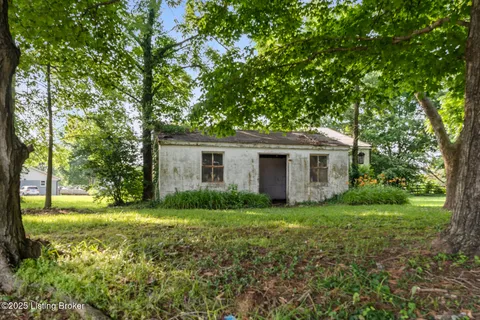 Great Location ! Quick Commute to Louisville or access to GeneSnyder or Interstate 64. Great corner lot in the Middle of Finchville. Over 2750 SQFT or finished living space. Lots of Large rooms with high ceilings and hardwood floors. This is Technically a 2 bedroom house due to the closet rule but there are multiple large rooms on the main floor that would make great bedrooms. Upstairs there two large bedrooms and a full bathroom. Outside there is a 36X42 metal pole barn with electric and concrete floor and a separate outbuilding that could be used for lots of things.