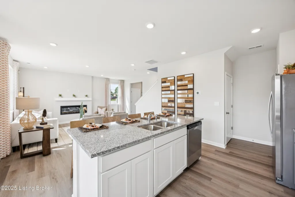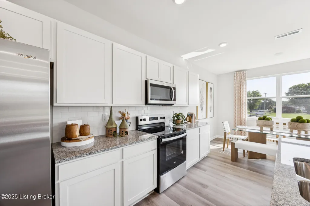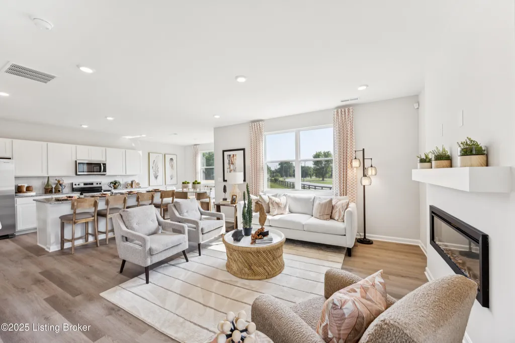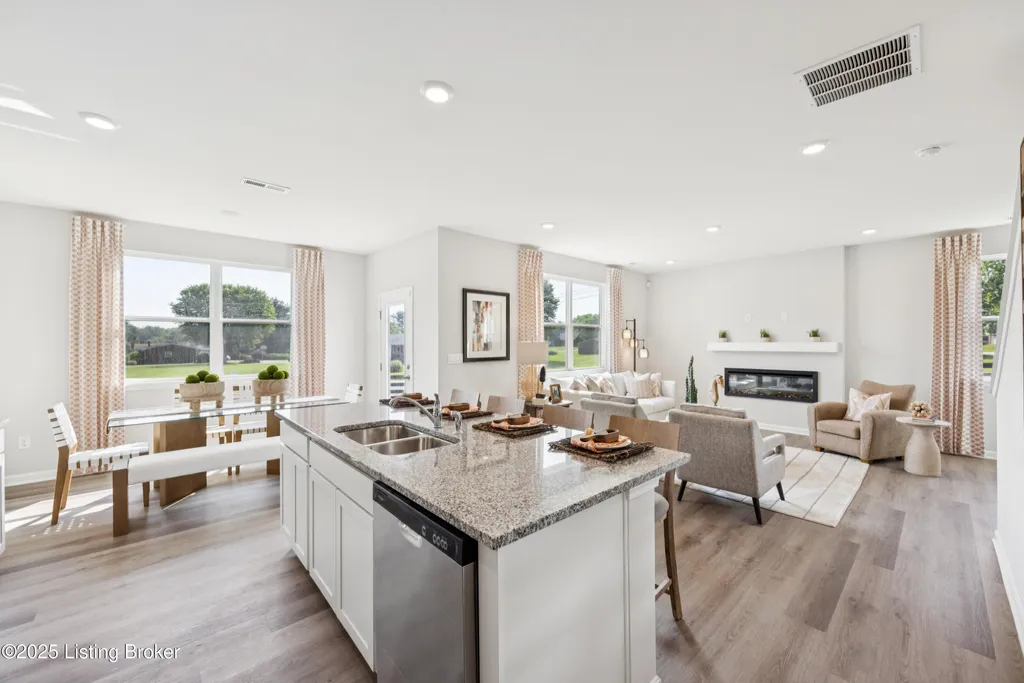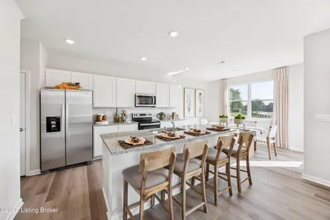 Introducing 584 Zelcova Dr, a new home in our arbor View community in Eminence, KY. The Pine, a thoughtfully designed 1,953 square foot open-concept home in our Koehler Woods community in New Albany, Indiana. offering the perfect blend of space, style, and convenience. With four bedrooms, two and a half bathrooms, and a two-car garage, The Pine is ideal for families looking for both comfort and functionality. As you enter, a welcoming foyer with a powder room and a coat closet greets you, leading you into the open concept living room, dining area, and kitchen, making it the perfect space for family gatherings or entertaining guests. The spacious kitchen is a chef's dream, featuring a large center island with seating, and ample cabinet space.