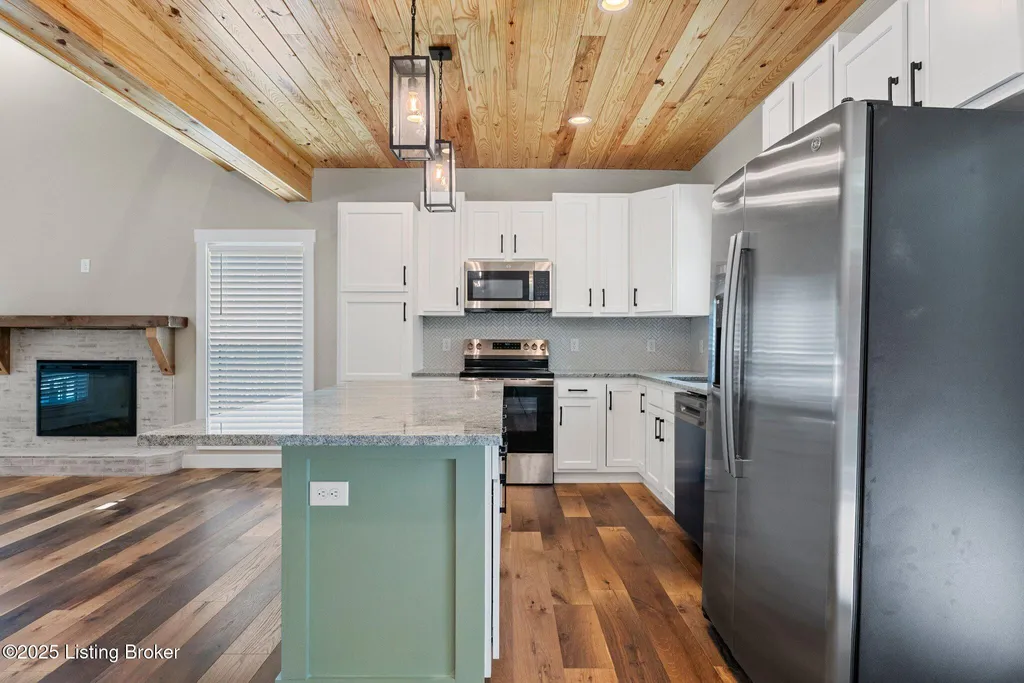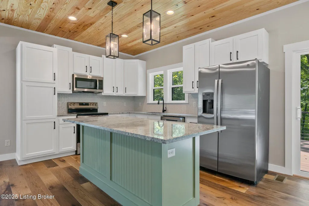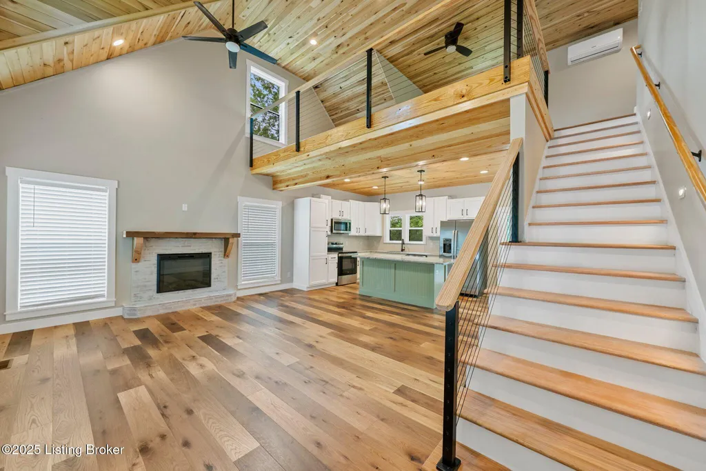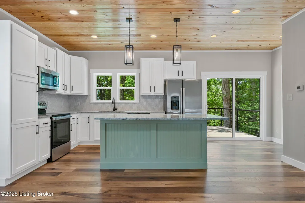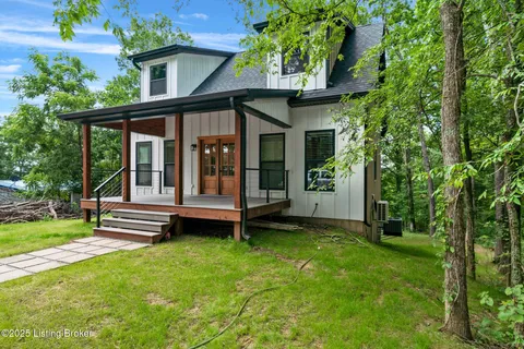 Adorable Lake-Area Home with Water View in Holiday Hills! Welcome to this charming lake-area retreat, perfectly nestled in the desirable Holiday Hills community. From the spacious front porch, enjoy peaceful views of the water - an ideal setting to relax and take in the scenery. The back deck off the kitchen and another deck at the basement level provide additional outdoor space for entertaining or quiet evenings. Inside, the home features a neutral color palette with warm pops of wood accents throughout, creating a cozy and inviting atmosphere. The open-concept kitchen, living, and dining area featuring warm wood ceilings and a cozy brick electric fireplace. The kitchen is outfitted with white cabinetry and granite countertops, offering both style and functionality. The main floor includes the primary suite and a convenient half bath just off the kitchen. Upstairs, you'll find a second bedroom, a full bath, and a spacious loft area perfect for additional sleeping space. The finished walkout basement includes a den, another sleeping area, full bath, and utility room great for guests or extended stays. With multiple living and sleeping areas, this home is ideal as a permanent residence or a weekend getaway for lake enthusiasts. Located less than 10 minutes from Day's Pro Bass Shop, Buoys at the Lodge, and the Dollar Store, you'll have quick access to all your lake life essentials. *Home is close to being complete with painter scheduled to finish painting the exterior of home as well as doorknobs on downstairs doors, HVAC final* Give the listing agents a call today!! We Know Nolin!!