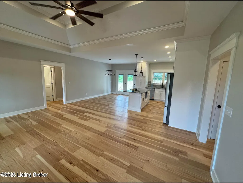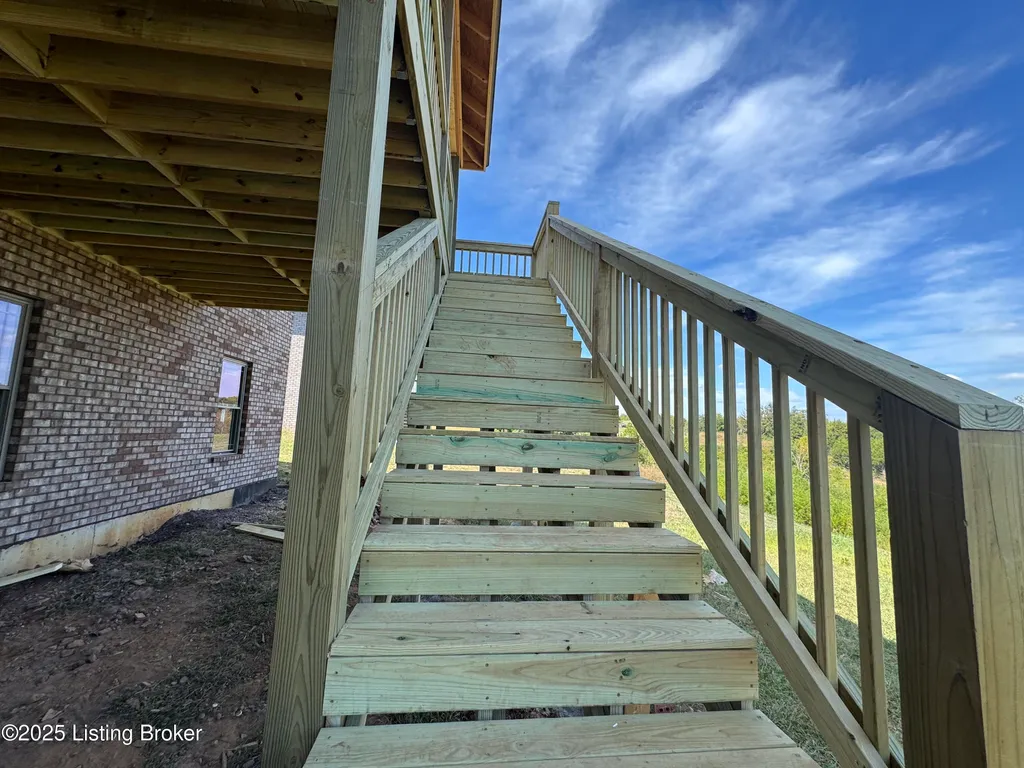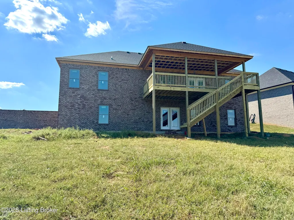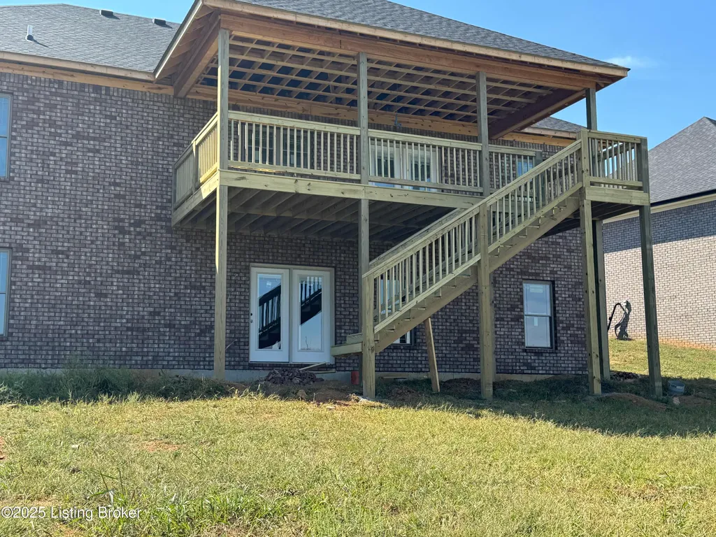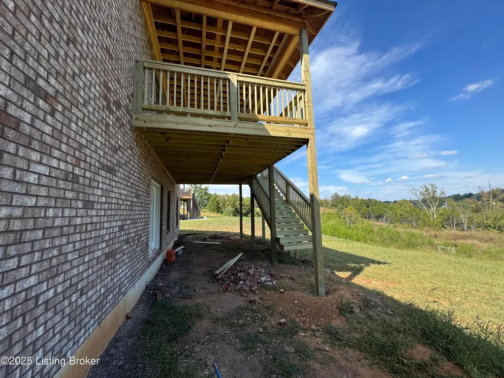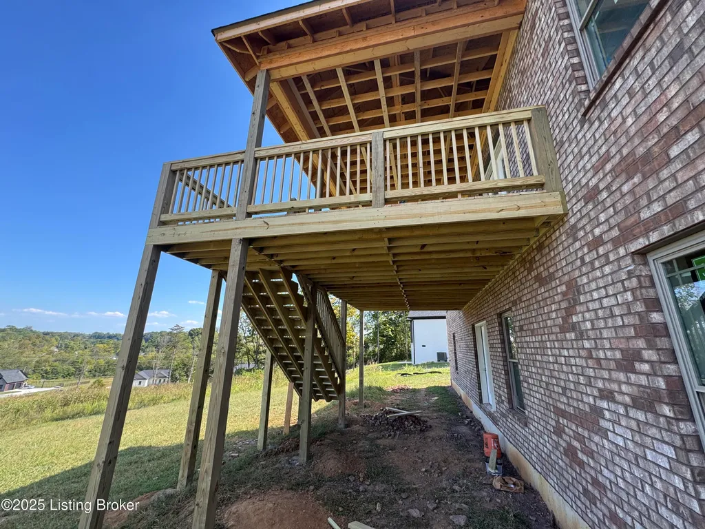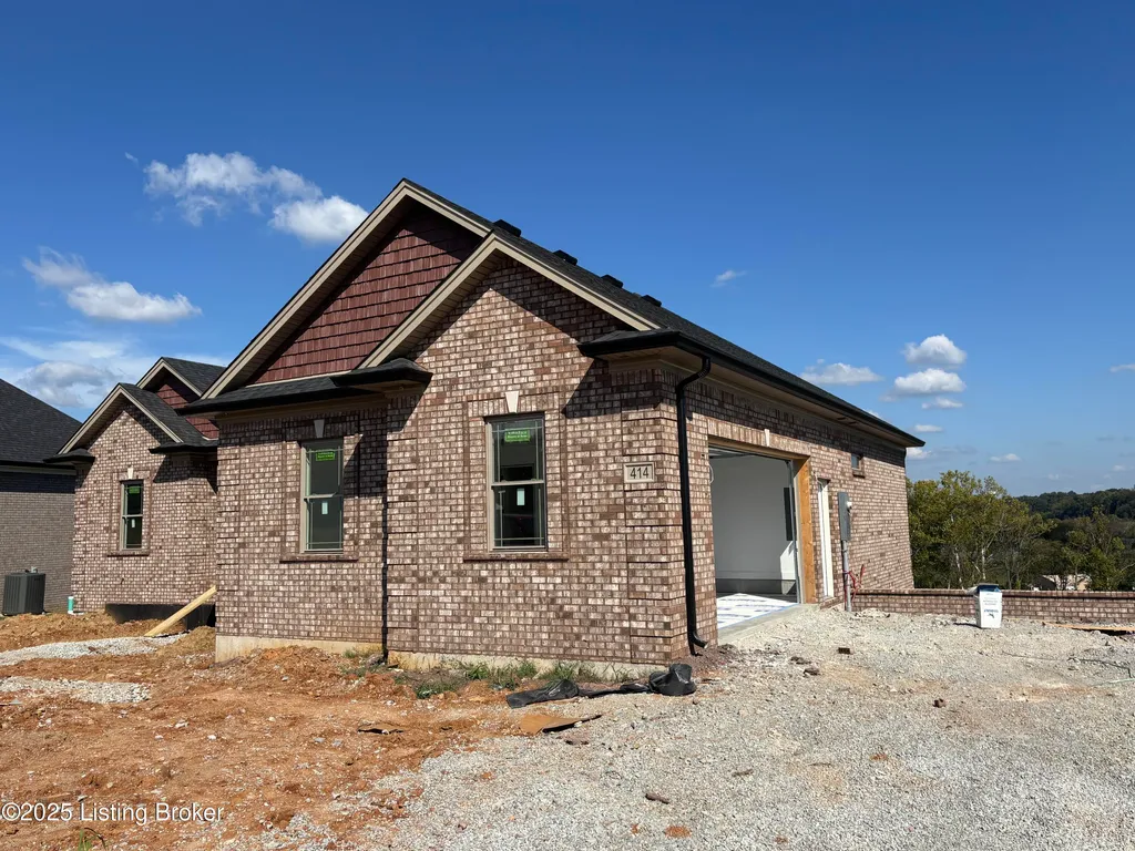 Beautiful all brick ranch with 1750 sq ft and 1900 sq ft in the walk-out basement. Beautiful shake siding accents. This home offers 3 bedrooms, 2 bathrooms, a large laundry room and 2 car attached garage. It sits on a .33-acre lot. with gorgeous views of the surrounding properties. The kitchen will showcase custom cabinets and granite countertops including a large island and recessed lighting. All stainless appliances. Primary suite has a large walk-in closet with wood shelves, a tiled walk-in shower, double vanity and soaking tub. Trey ceiling in great room and primary bedroom. Beautiful ceiling fans and lighting through-out. 9ft ceilings. The walk-out basement is framed in and ready to be finished. Upstairs, from the dining area, you'll walk out to the massive deck and enjoy the views. There's also a concrete patio off the patio doors in the basement, perfect for entertaining and cookouts. Great location, close to My Old Kentucky Home and Golf Course. The Bourbon Capital of the World! Don't miss out on the opportunity to own this gorgeous home!