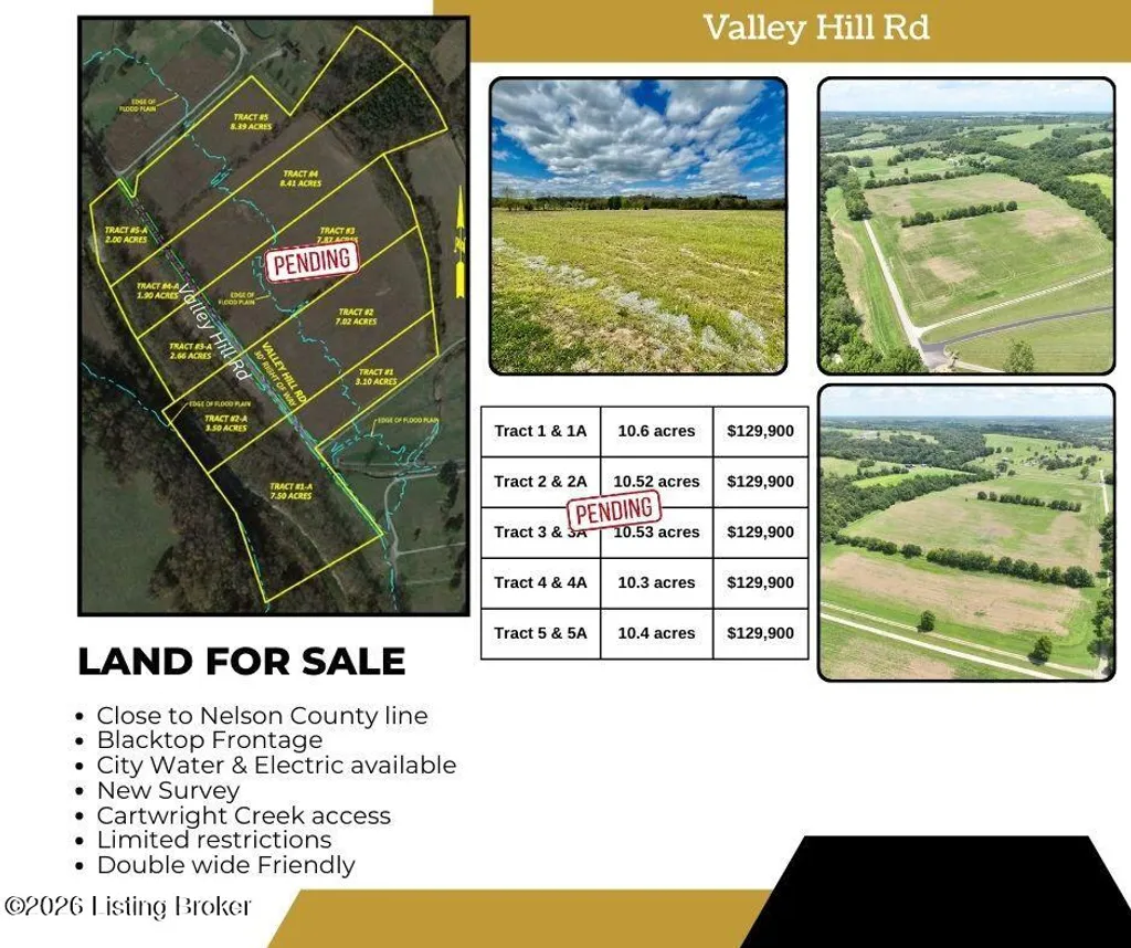 Rare Find! 10.5 acres in the Burg Area! Land is located between Springfield & Bardstown with city water & electric available! Blacktop frontage! Access to Cartwright Creek! Brand new survey! Make this your spot for your new home!